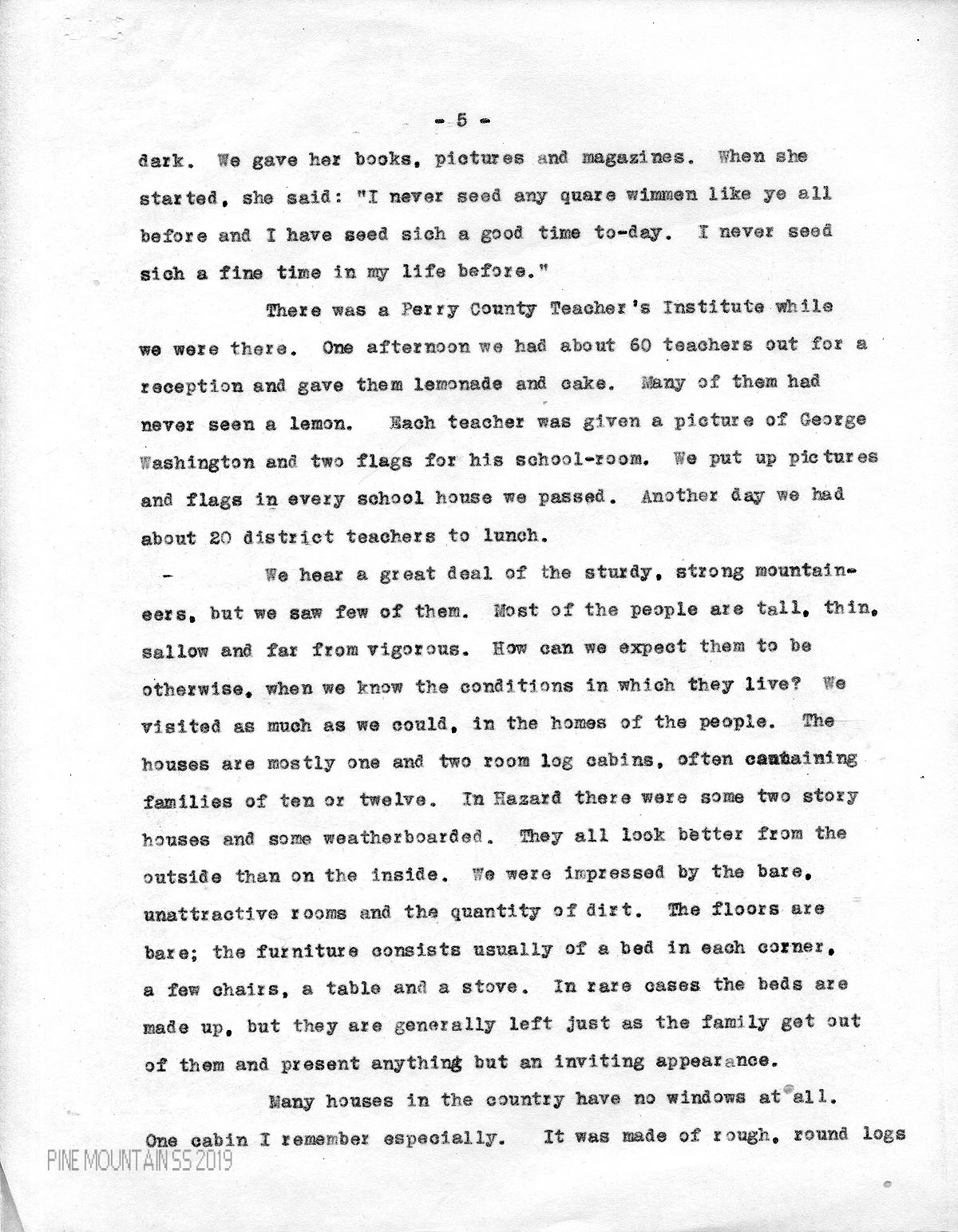 TAGS: Katherine Pettit ,1899-1900, Camp Cedar Grove, Report of the Committee on Social Settlements in the Mountains of Kentucky, State Federation of Women’s Clubs, Hazard KY, Traveling Library Committee, Mrs. C.P. Barnes, May Stone, Rae M. McNab, Mary E. McCartney, Sassafras, KY, mountain people, literacy, libraries, Rev. J.T. Mitchell, Perry County Teachers Institute, community residents, cooking lessons, sewing lessons, teachers, tobacco use, preachers, funerals, sermons