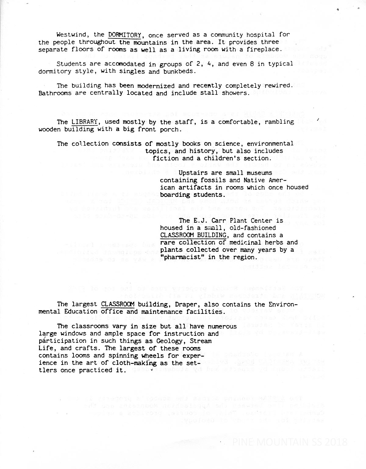 In 1972 a new phase of education became a major focus for the school. IN an area surrounded by natural beauty and yet endangered by the growing unconcern of business and industry for the preservation of resources, Pine Mountain was uniquely suited to become a center for environmental education.