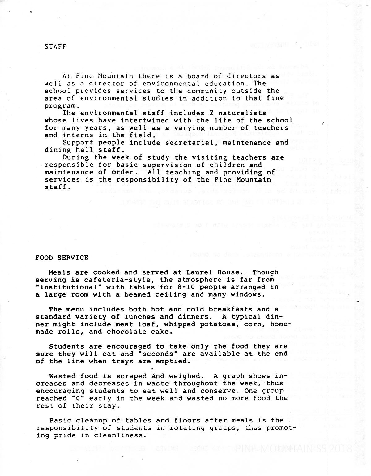 At Pine Mountain, there is a board of directors as well as a director of environmental education. The school provides services to the community outside the area of environmental studies in addition to that fine program.