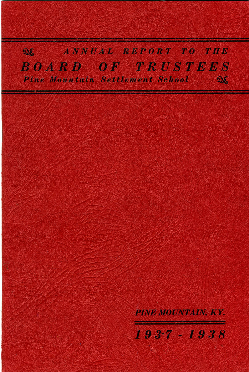 001 Cover: “Annual Report to the Board of Trustees, Pine Mountain Settlement School, Pine Mountain, Ky., 1937-1938.” Artist: John A. Spelman III.