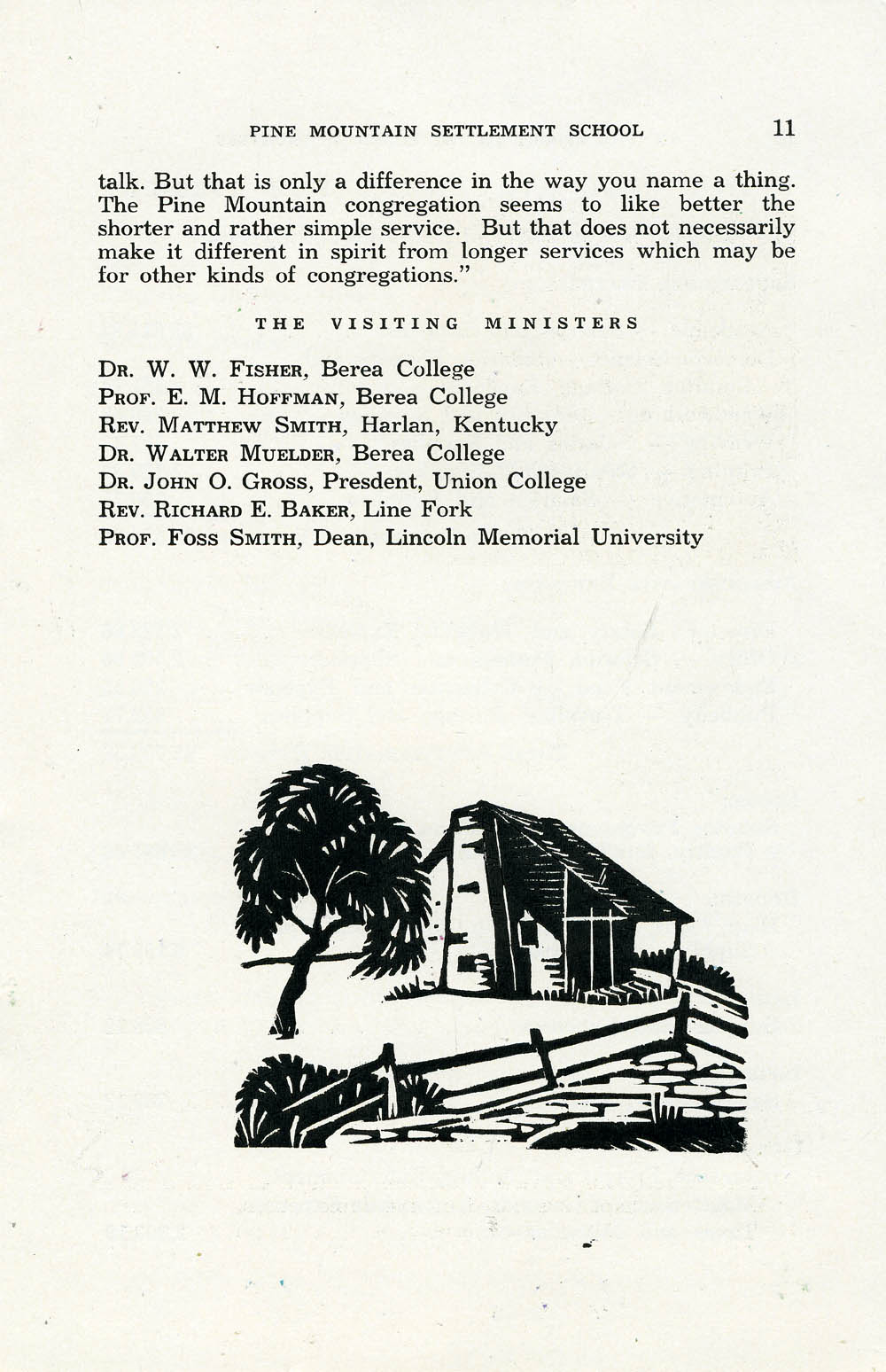 002 Preface: “Published by the Print Shop, Pine Mountain, Kentucky. This report was printed at the Print Shop where some twenty students work and have classes. Woodcuts by John A. Spelman III.”