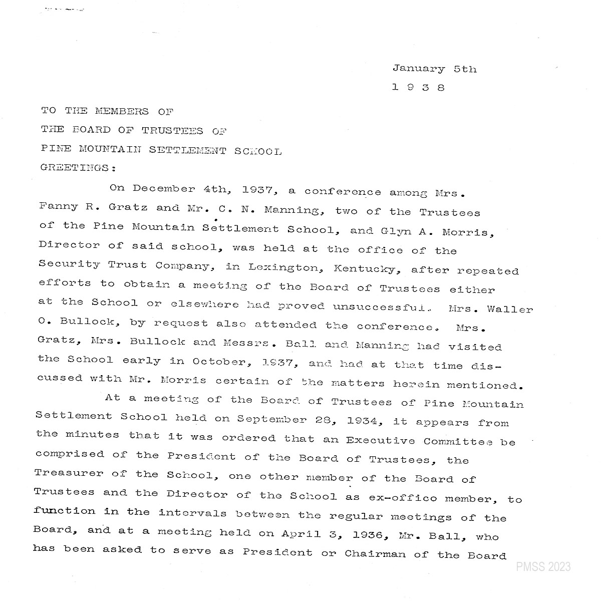 Morris requests a meeting with the Board of Trustees – 1938 .