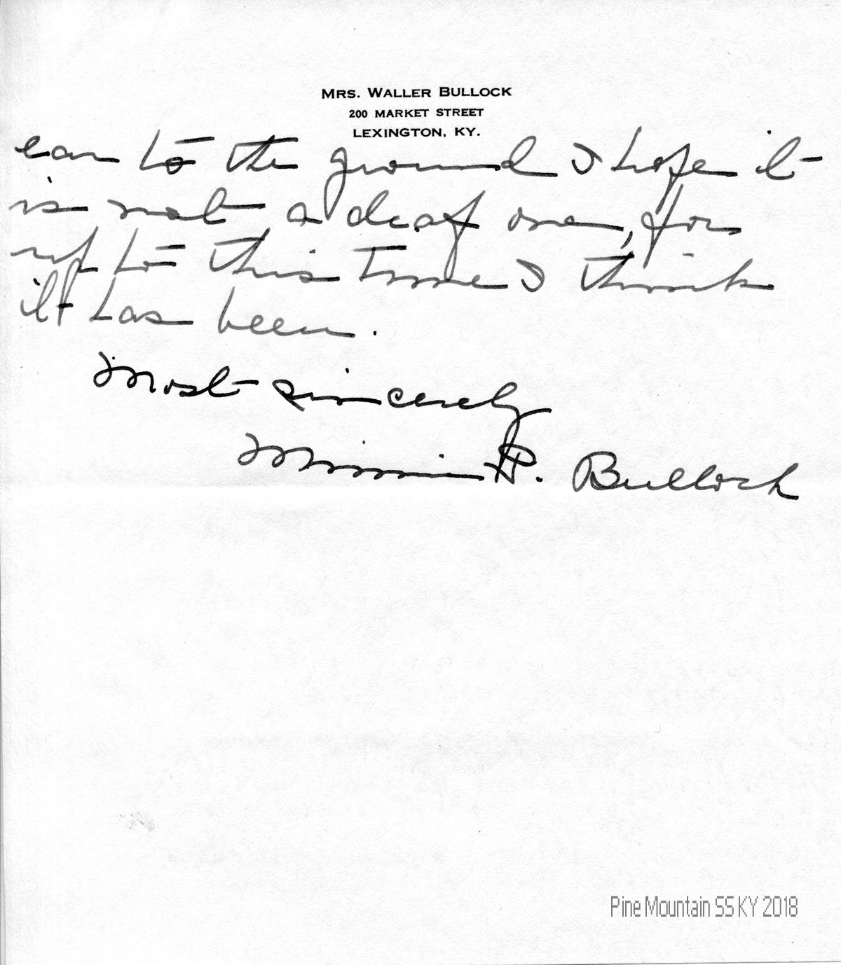 006-006a April 8, 1941. Two-page handwritten letter to Miss [Evelyn K.] Wells from MInnie P. [Mrs. Waller] Bullock at Cumberland Island, GA, 006 who writes of her disappointment with the “present head of the School” and recent developments at the School. 006a She hopes that Mrs. [Fannie] Gratz, who is also discouraged, will stay on the Board; she asks that no-one else sees this letter, as she is “still interested in the splendid work that Mr. and Mrs. [Richard] Baker are doing at Line Fork.”