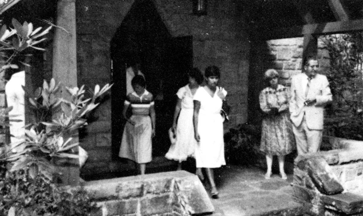 The truly Handsome Tales are about moonlight swims after the Dancing Party, sitting in the “catbird” seat of Jack Martin‘s luxurious van, spending part of a rainy afternoon (after cleaning up the Open House Lean-To) in cozy comfort with good friends, partaking of delicious refreshments in David Martin’s van. The most Handsome Tale of all is about Bill Tye, who is now Dr. George William Tye. George was the one who gave the Talk at Chapel on Sunday morning. He spoke about Mental Hygiene and how we are in control by being realistic, choosing the best alternatives open to us and accepting responsibilities. He closed with a heartfelt tribute to the staff at Pine Mountain while he was a student. A lot of Bill’s friends might remember that he was and still is, a long-winded type of fellow. His former roommates recall that at night they were afraid to even grunt, so as to discourage him from taking off on another long subject. So, he was allowed twenty minutes to give his talk and if he had exceeded that, the rest of us had made a secret pact to silently get up and file out!