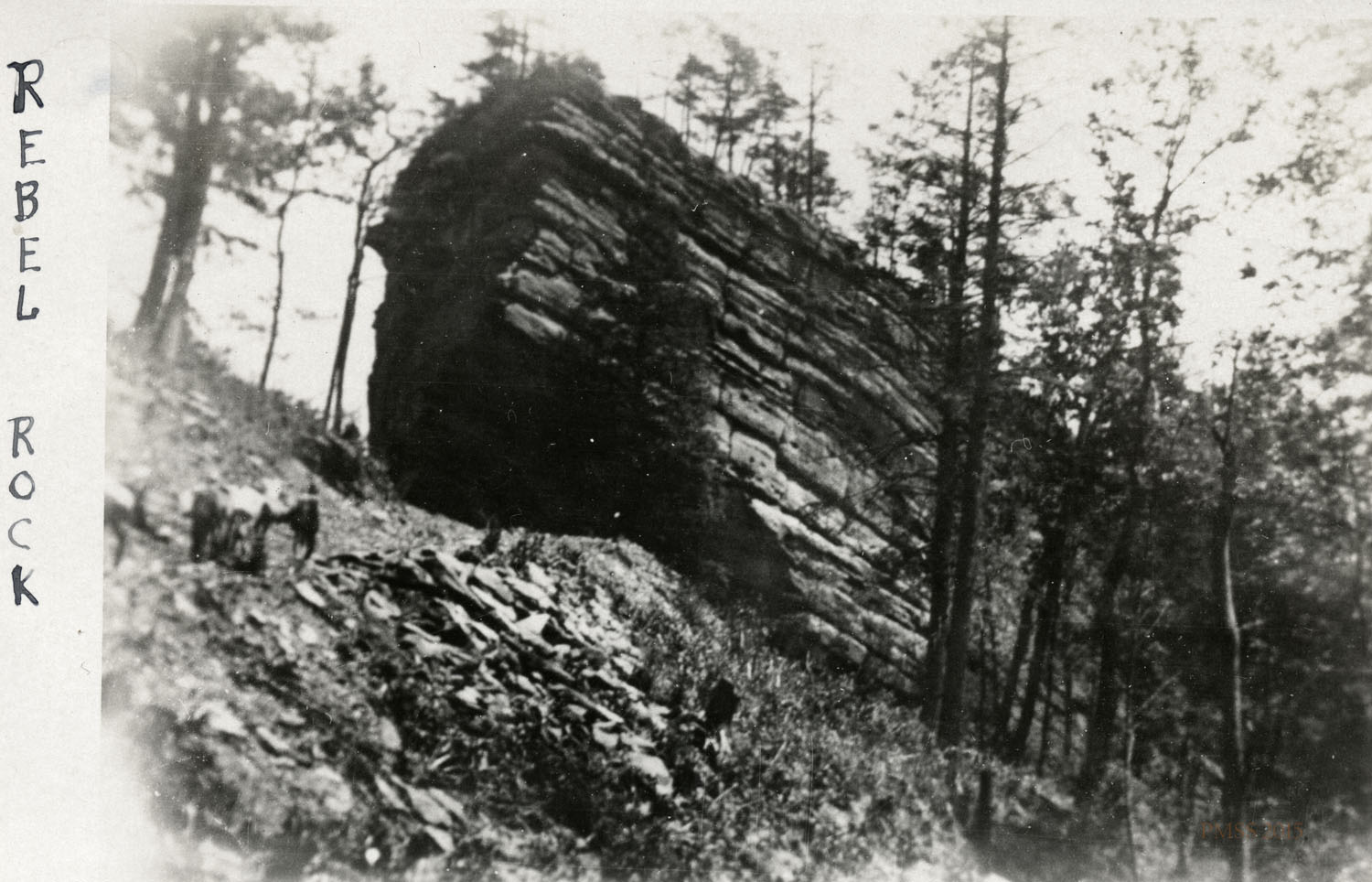 - Bassett Album, c. 1928-29. Rebel’s Rock, a landmark on Laden Trail.[pmss_bas046.jpg]