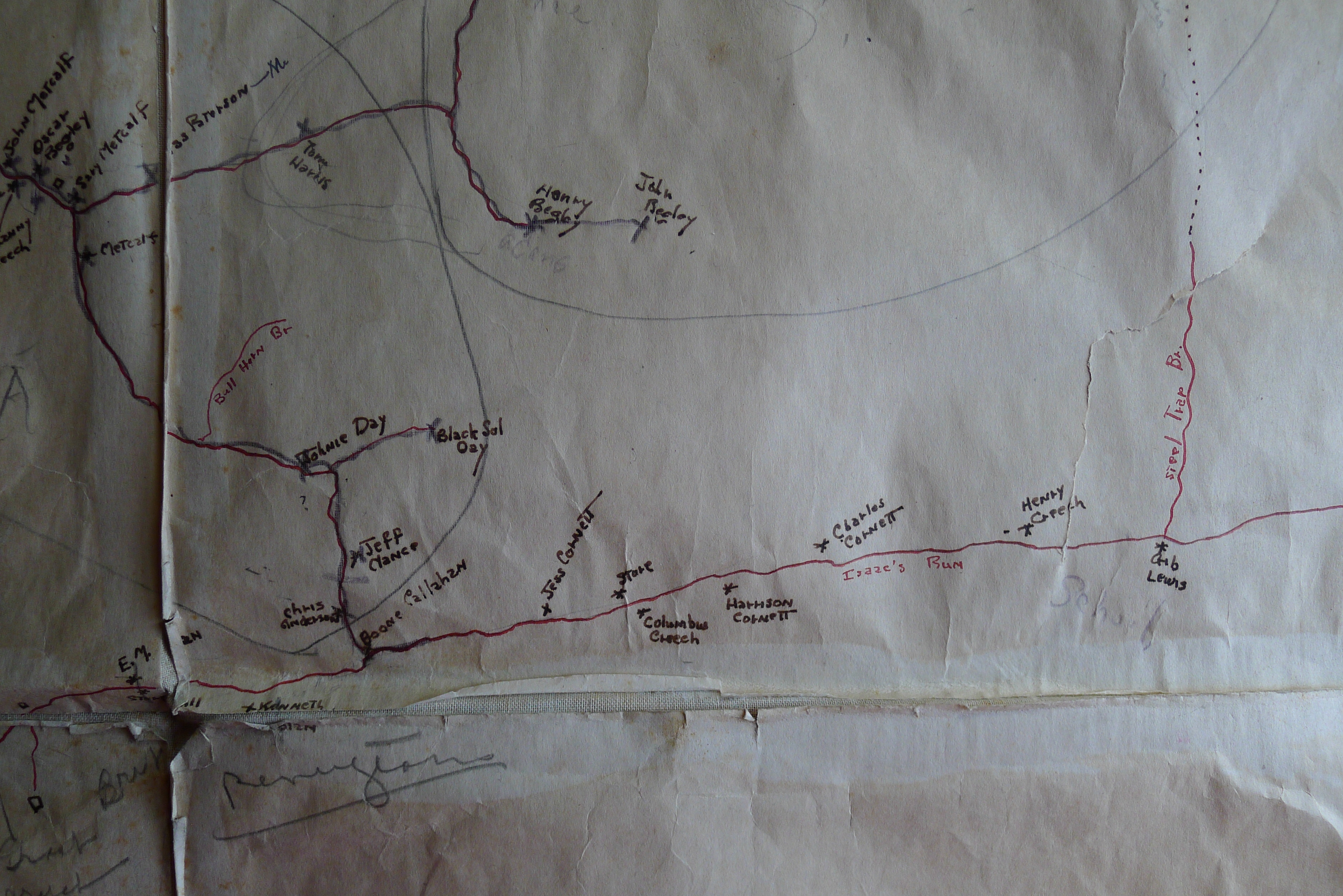 - Community Map of Pine Mountain valley – partial view of larger map showing Isaac’s Run toward Steel Trap Branch and Line Fork Settlement. [P1050592.jpg]