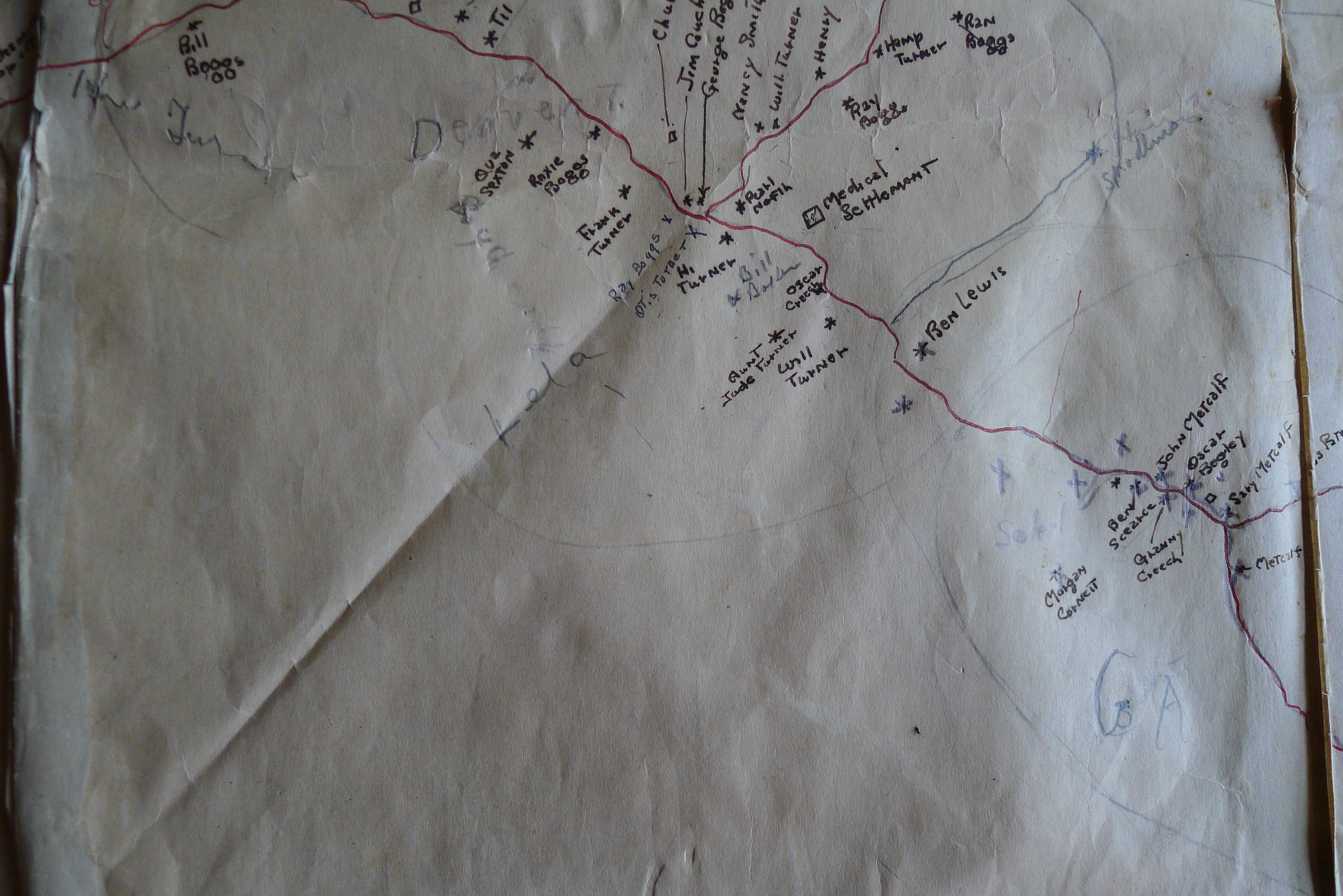 Birdena Bishop had assisted in the study of the local community in 1942. She most likely prepared the map, which showed where each family lived along the various creeks.