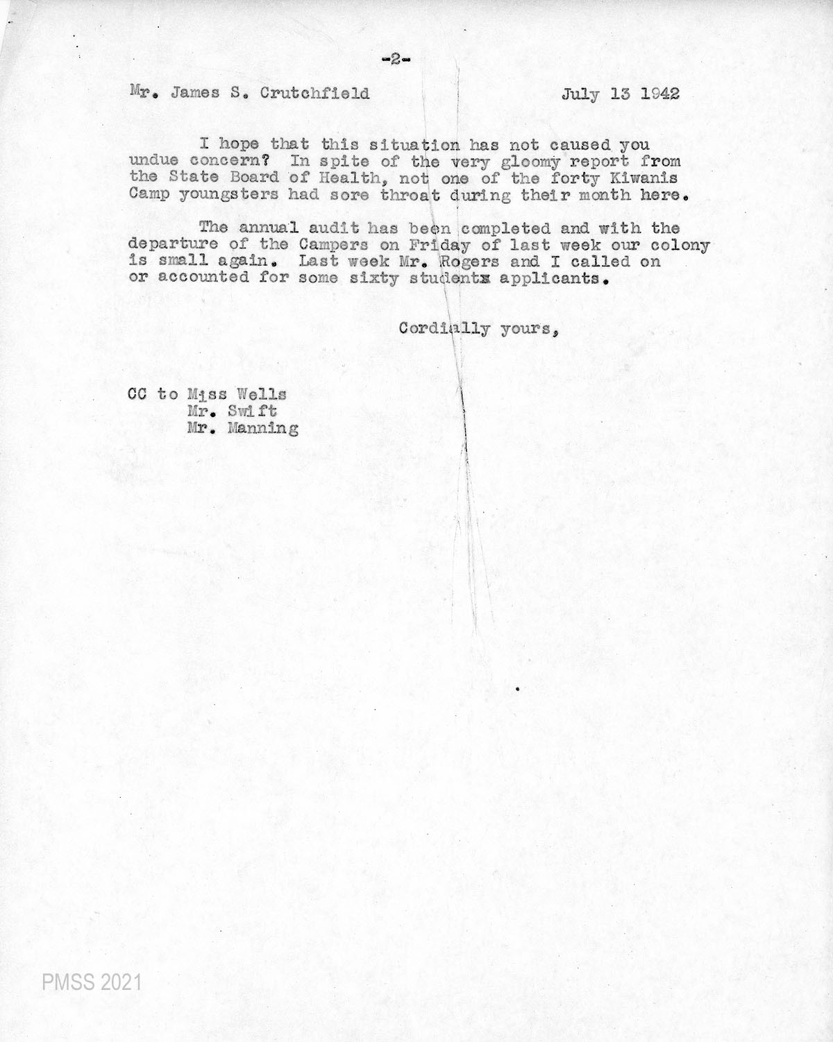 GALLERY: CORRESPONDENCE of the 1942 Sore Throat Epidemic at PMSS