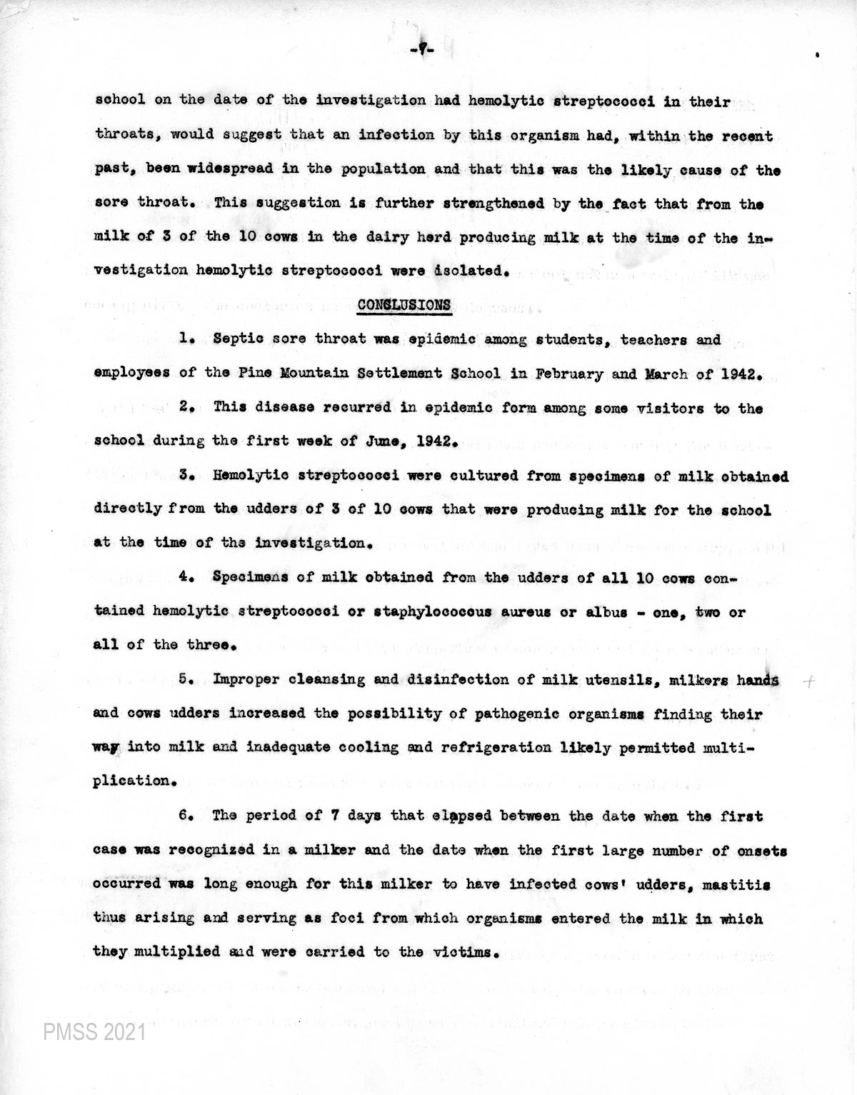 CONCLUSIONS of the 1942 Sore Throat Epidemic Study