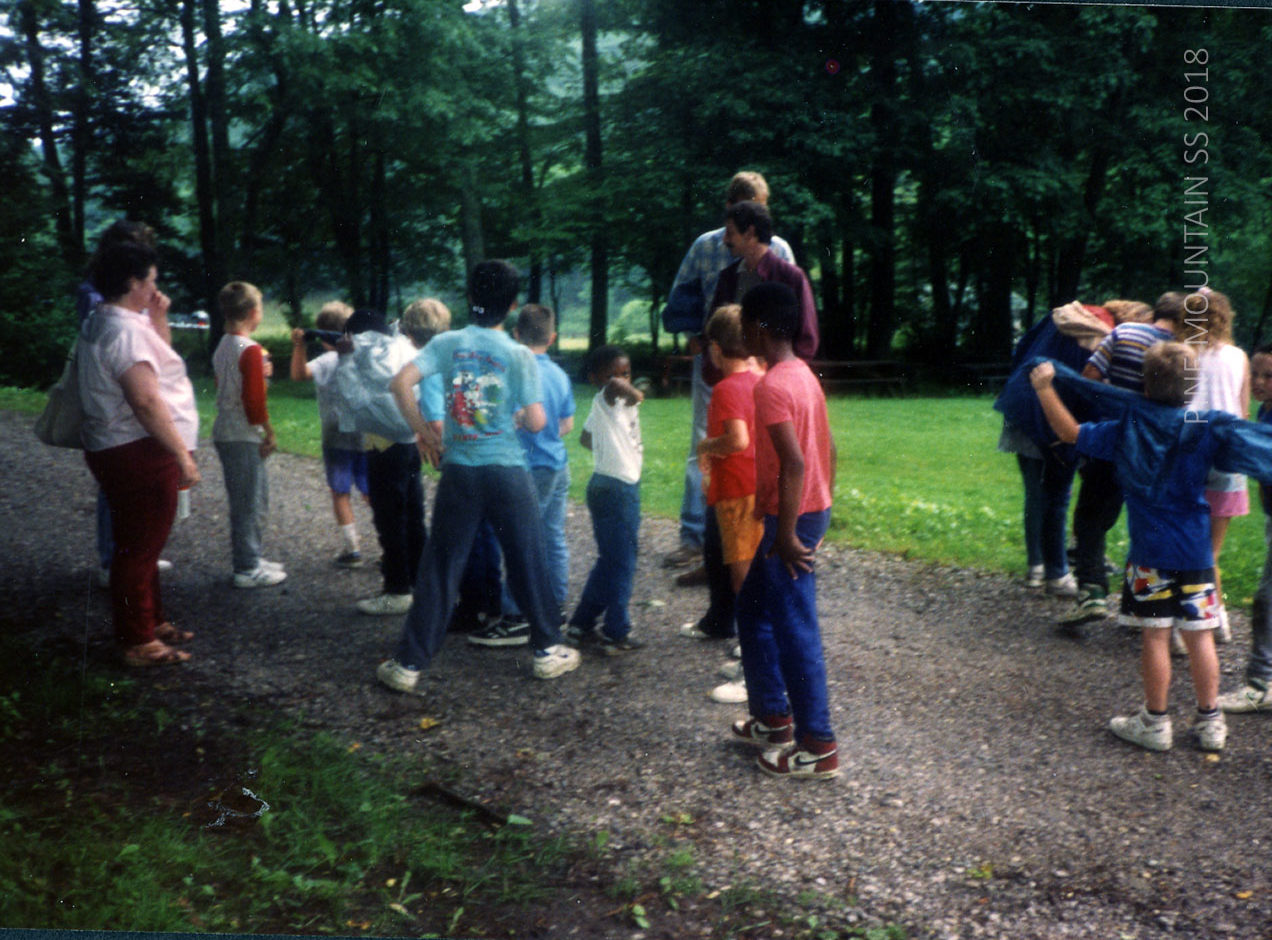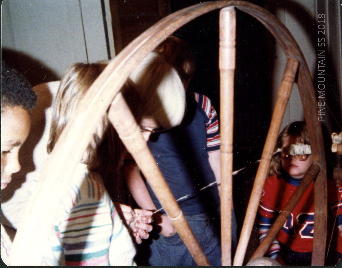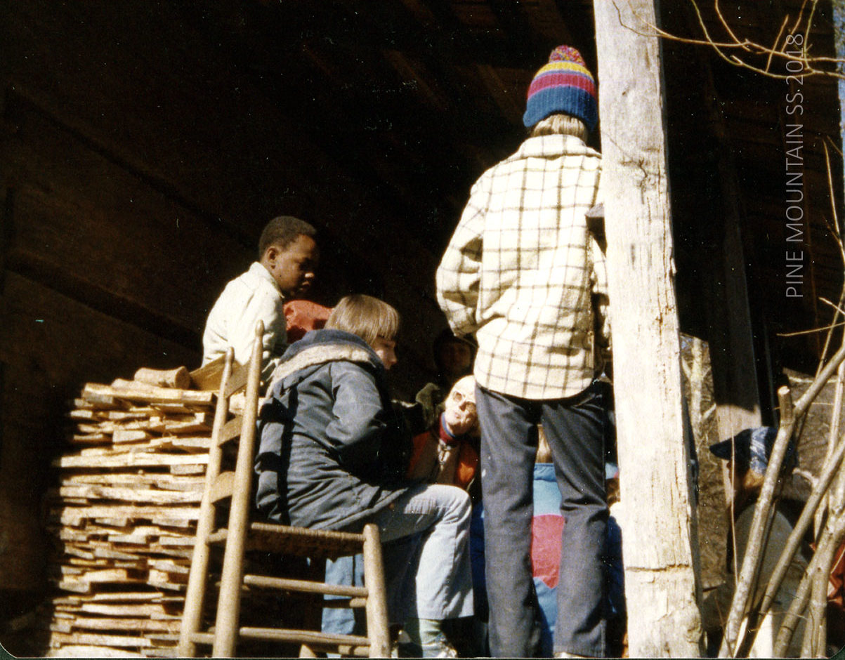 The following general views of children in the Pine Mountain Settlement School Environmental Education Program in the late 1970s and early 1980s are participating in the Native Americans and Early Settlers module. Many of the color photographs focus on the activities of the specific EE Program module. The photographs capture various schools, children, teachers, and PMSS staff.