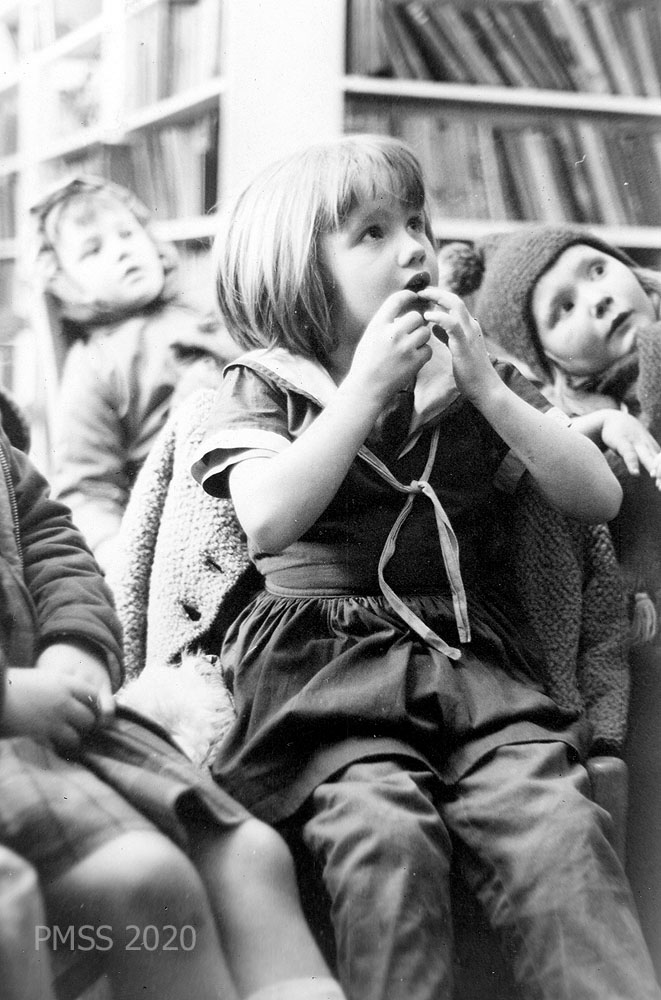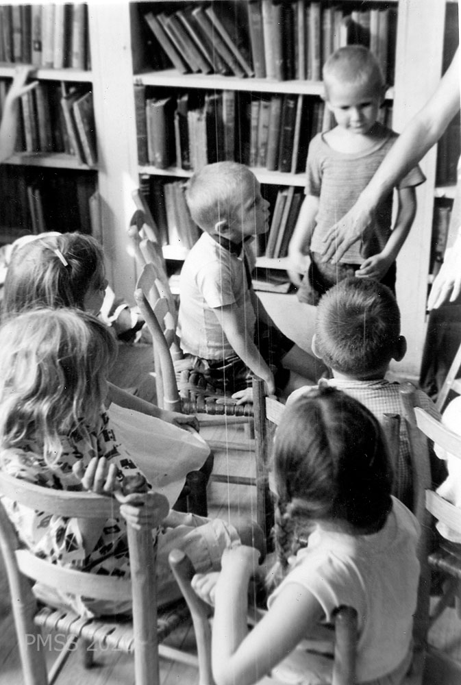 The storytelling sessions from the 1950s and 1960s captured in these photographs are a story in themselves. The photographs from the 1960s are most definitely the work of Paul Lynn, a staff worker and skilled photographer. An album gathered by the photographer resides in the Archive collections as Paul Lynn Photograph Album. Also, other photographs from the 1960s in the SIA collection may be attributed to Lynn throughout the SIA photographic material.