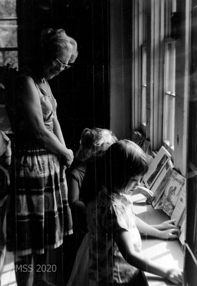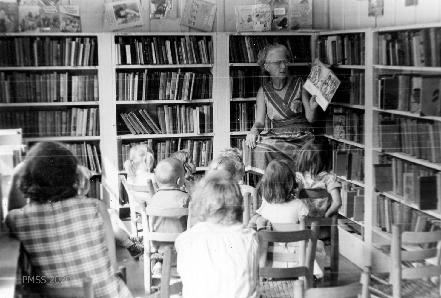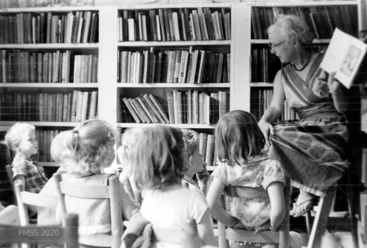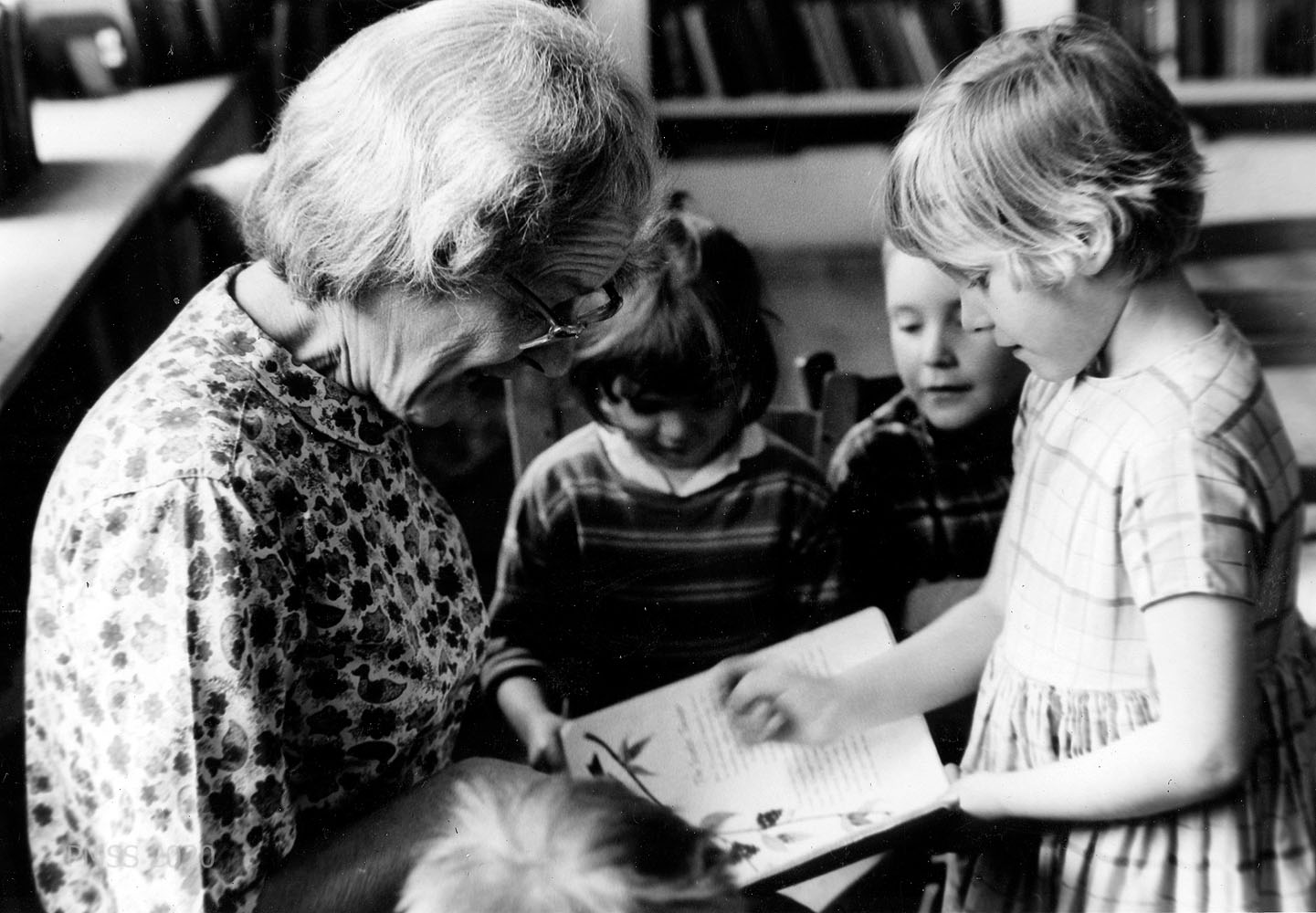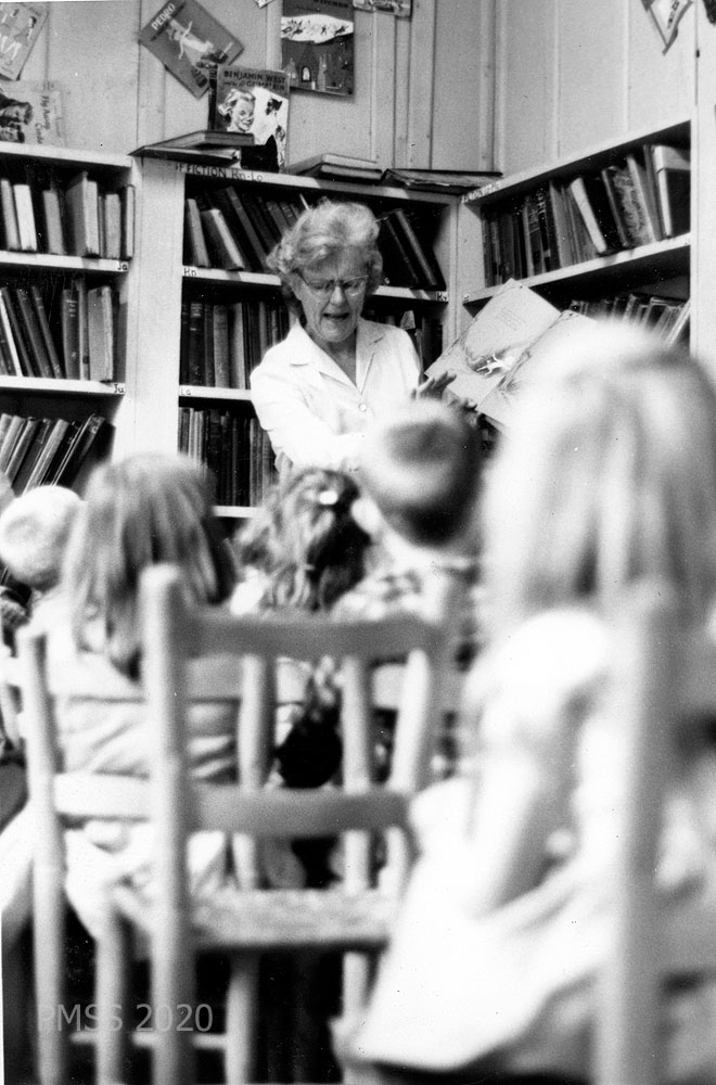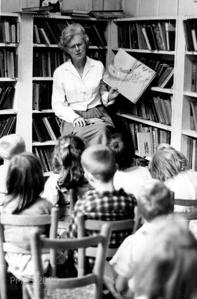- 01a Mary Rogers, reading stories to children in the Library. [90_LW_school_library_s_001a]