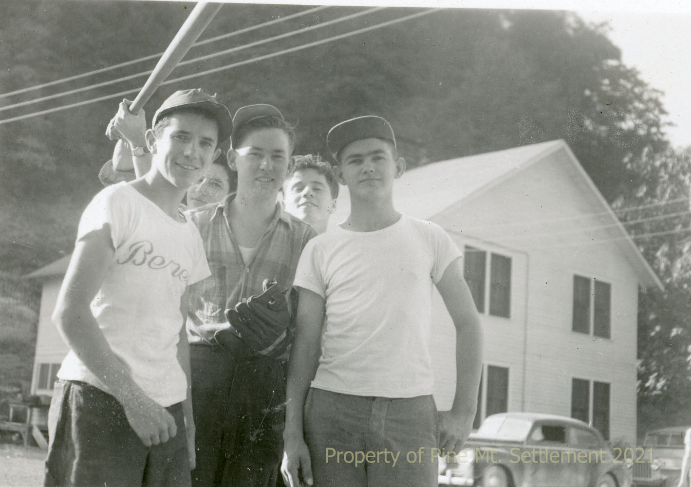 007a 1.) [B-2425] “[Ball] Game at Settlement 1946. Bill Blackson, Jack Graves, Doug Reynolds, Denzel Duncan, Jim Blanton.