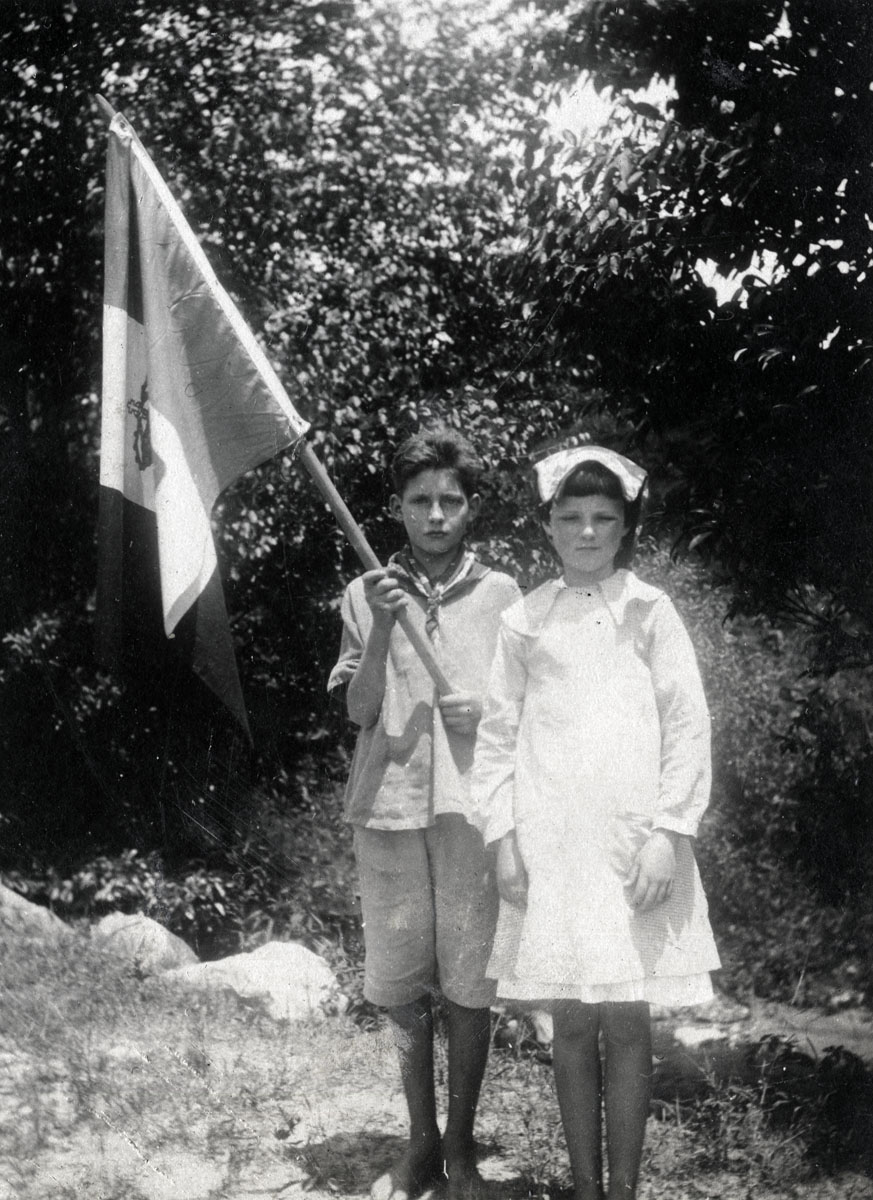 - 036 Children carry flags of Allied Nations, during WWI; Frances Johnson