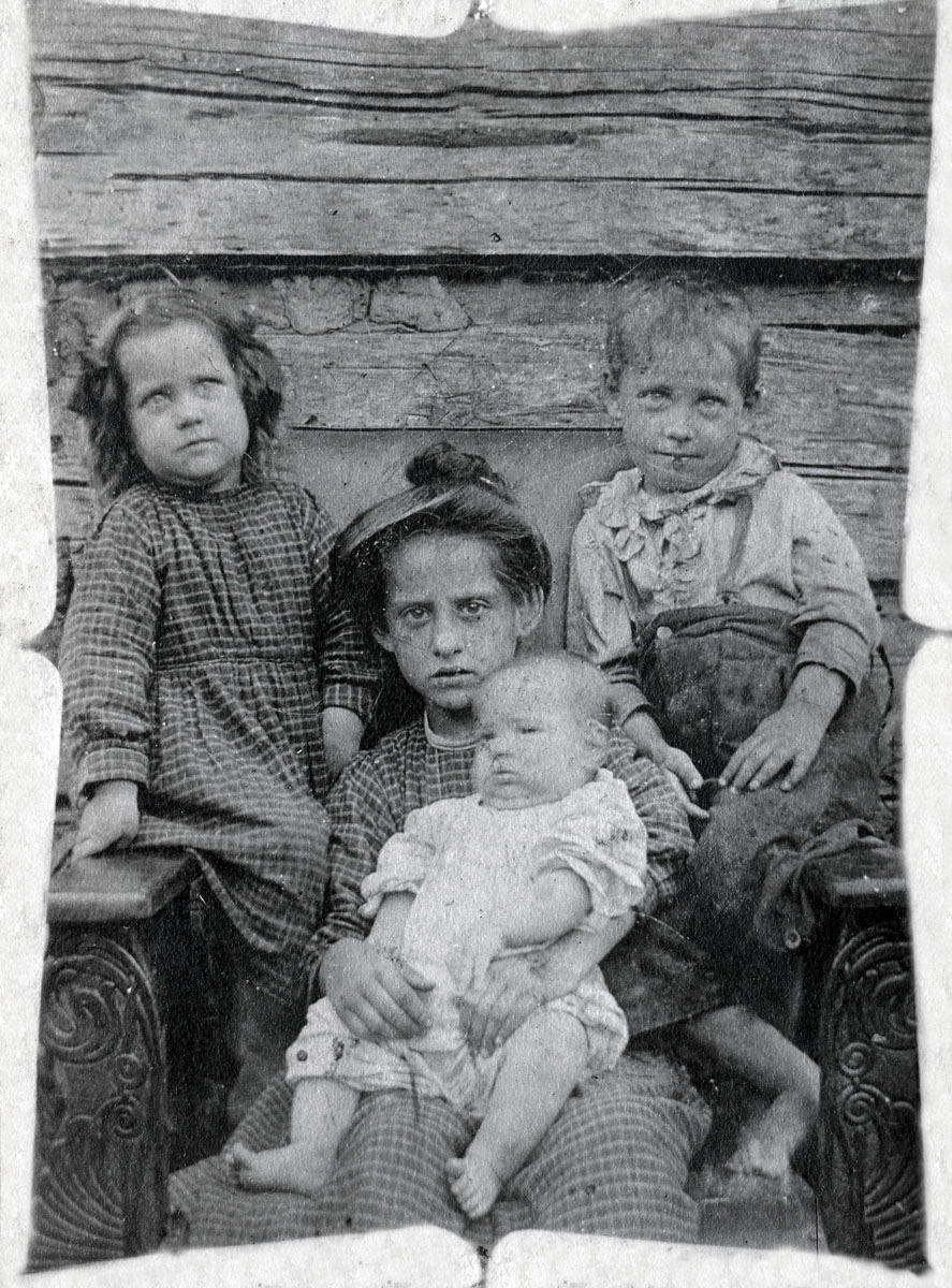 - 045 Caldonia Brown at seven years of age mothering three small children; Caldonia Brown at sixteen years of age; Caldonia Brown; Clara Siler; Mossie Minniard.