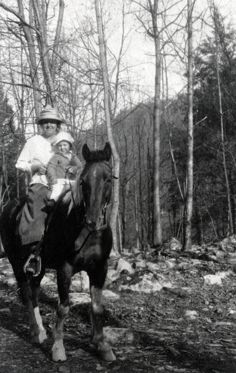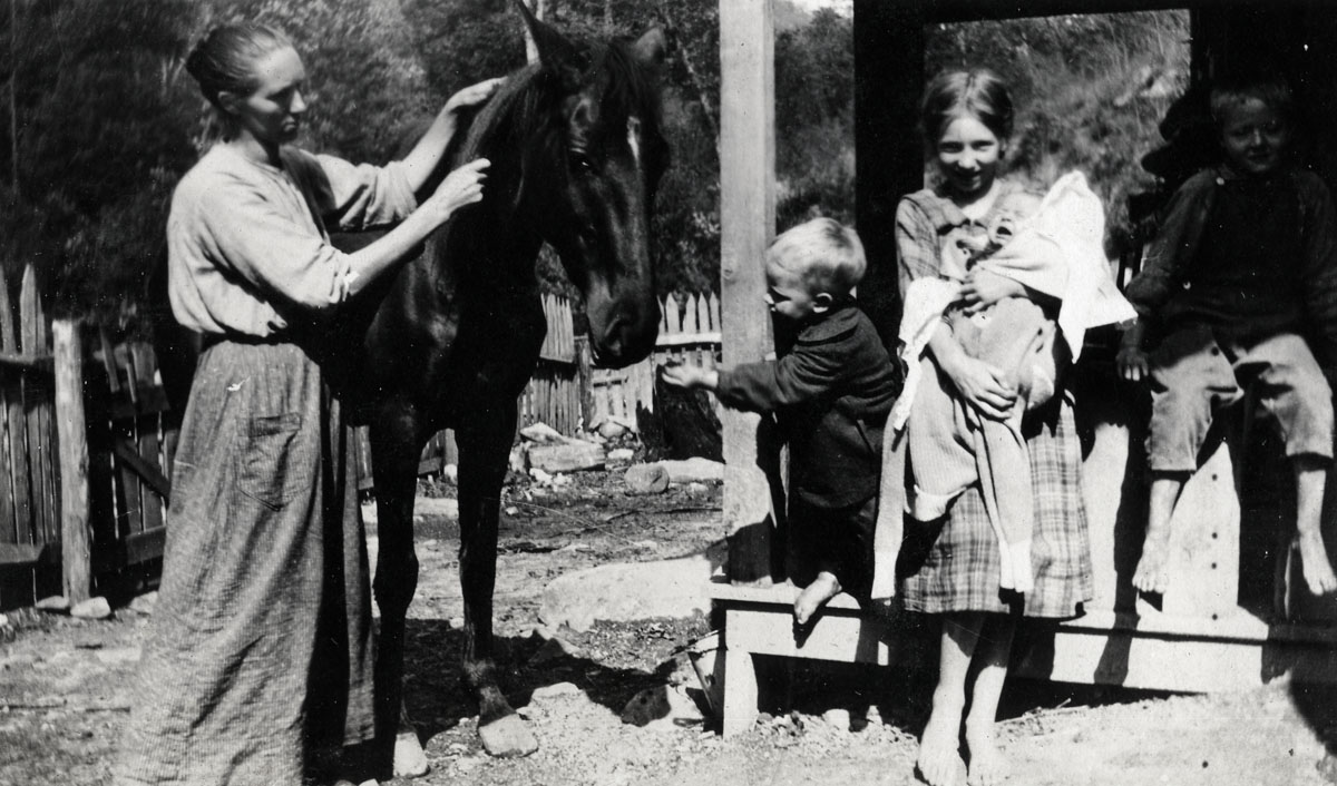 - 056 Sol Day’s family at head of Greasy Creek; Divide Sunday School; [Mrs. Sol Day, horse and children.
