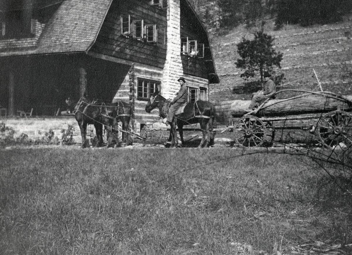 - A log from sawmill goes past Big Log House [mccullough_II_51a.jpg]