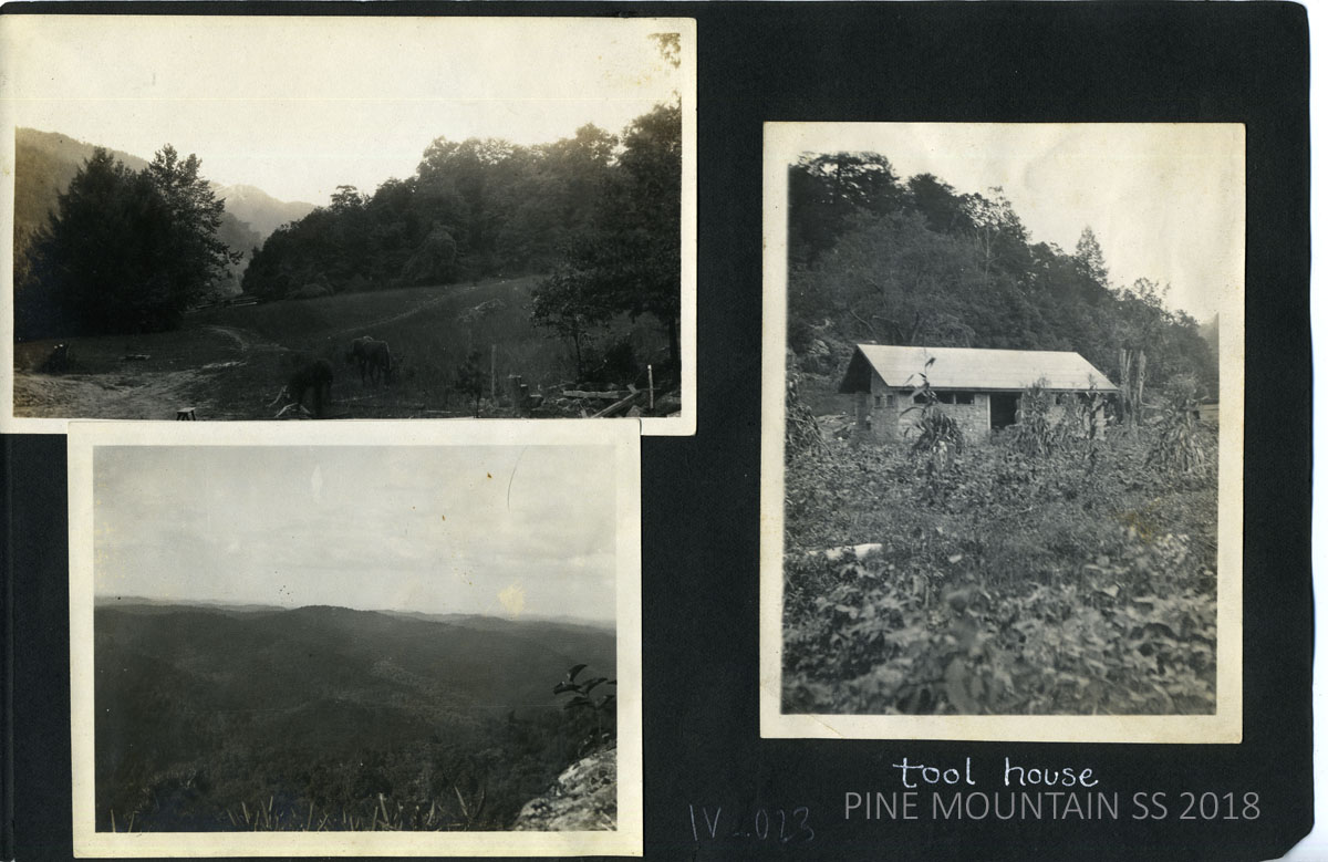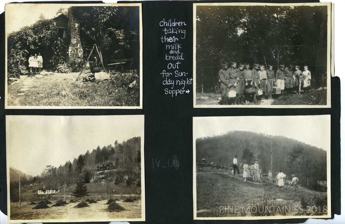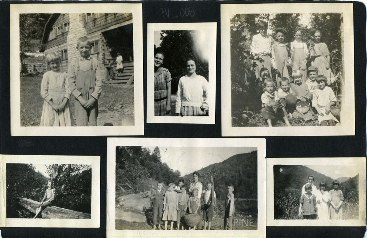 TAGS: Ethel McCullough; Pine Mountain Settlement School; 1914; photograph album; students; education; Southern Appalachians; Harlan County, Kentucky; photography; horses; log cabins; crafts; children;