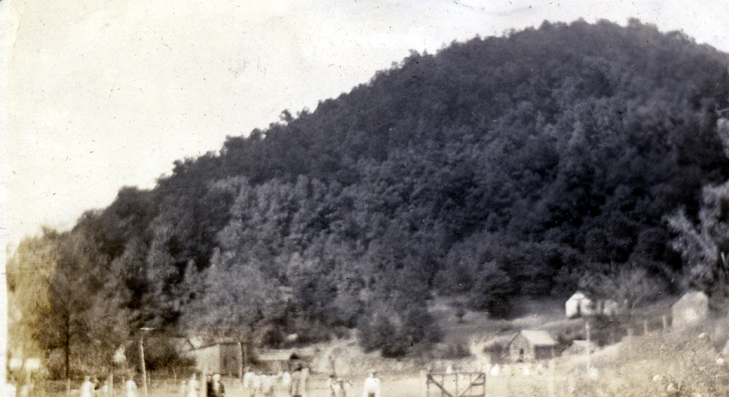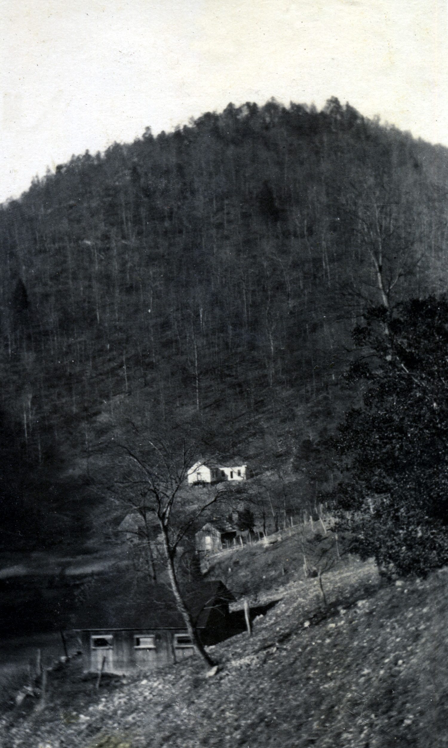 - “Pine Mountain Settlement School. 1923-4-5 – The First Glimpse” of Pine Mountain Settlement School coming from the west across Laden Trail. [nesb_071_mod.jpg]