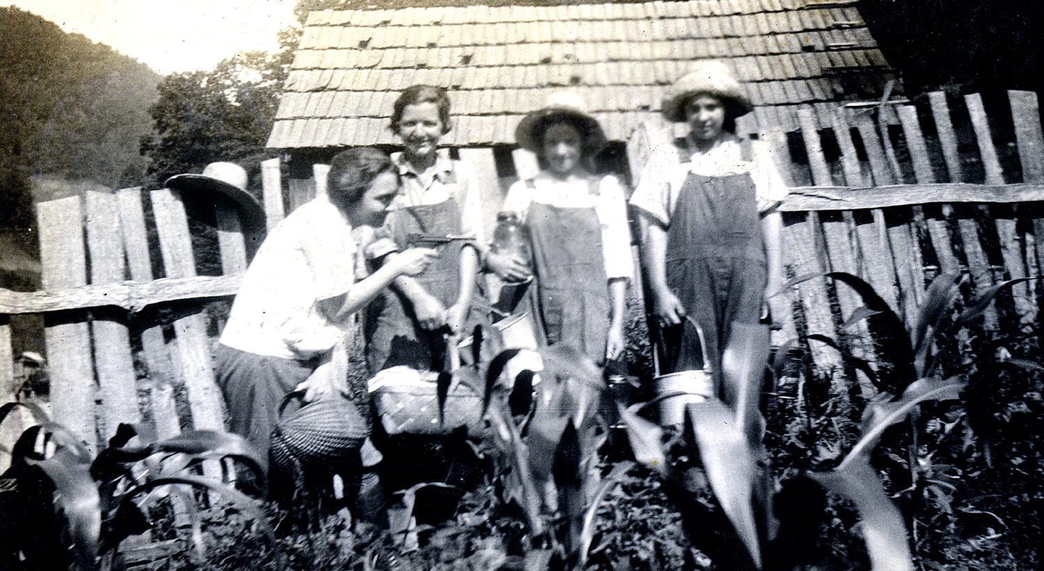 - “Berry Pickin’ Time. Alice, Mollie, Lou Ann.” Aileene Lewis is second from left. [nesb_103_mod.jpg]
