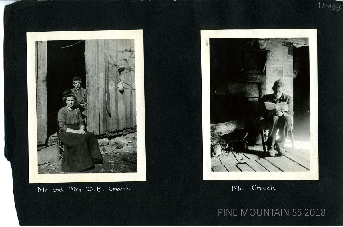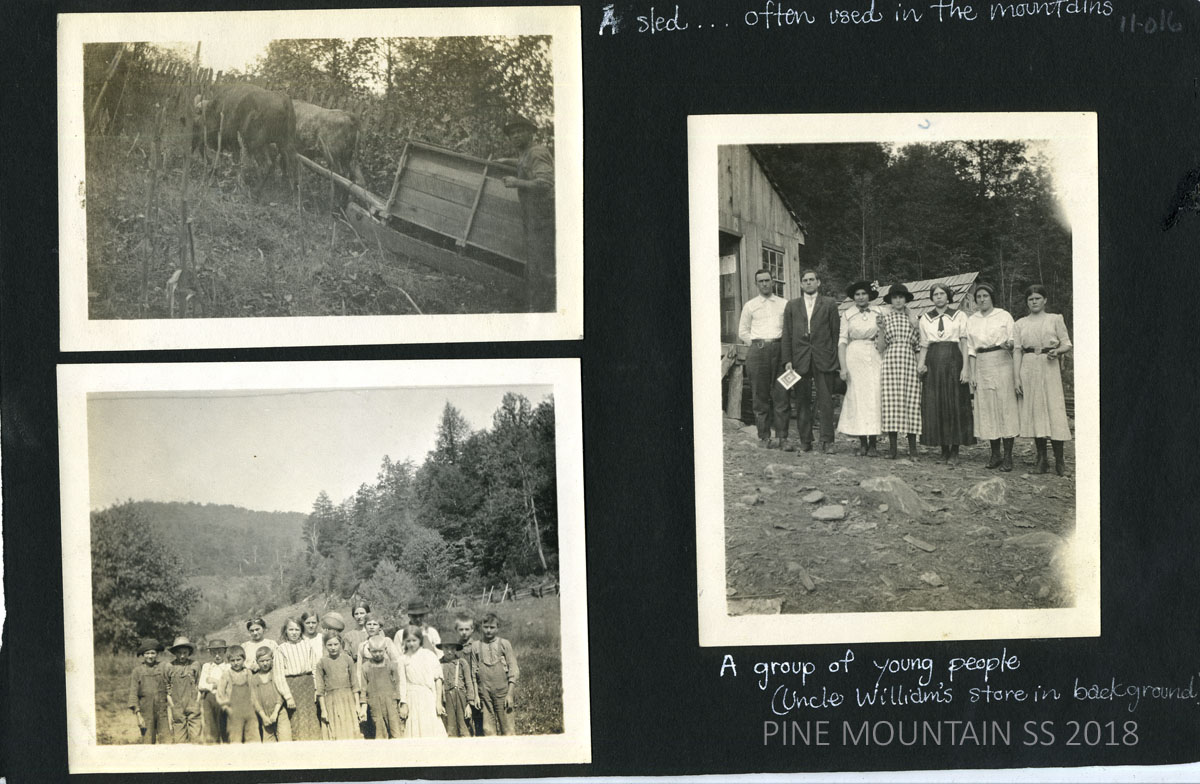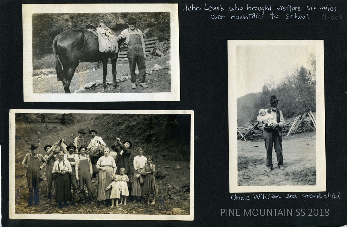 The Ethel McCullough Photograph Album is the largest and oldest aggregate of photographs taken in the earliest years of Pine Mountain. The Album captures the lives of the surrounding community and the interaction of the workers at the School from approximately 1914 until 1920. Most photographs center on the Big Laurel and the Line Fork areas where eventually two satellite settlements were started. Portraits of community members and various students and staff who worked with Ethel McCullough fill this segment of the album.