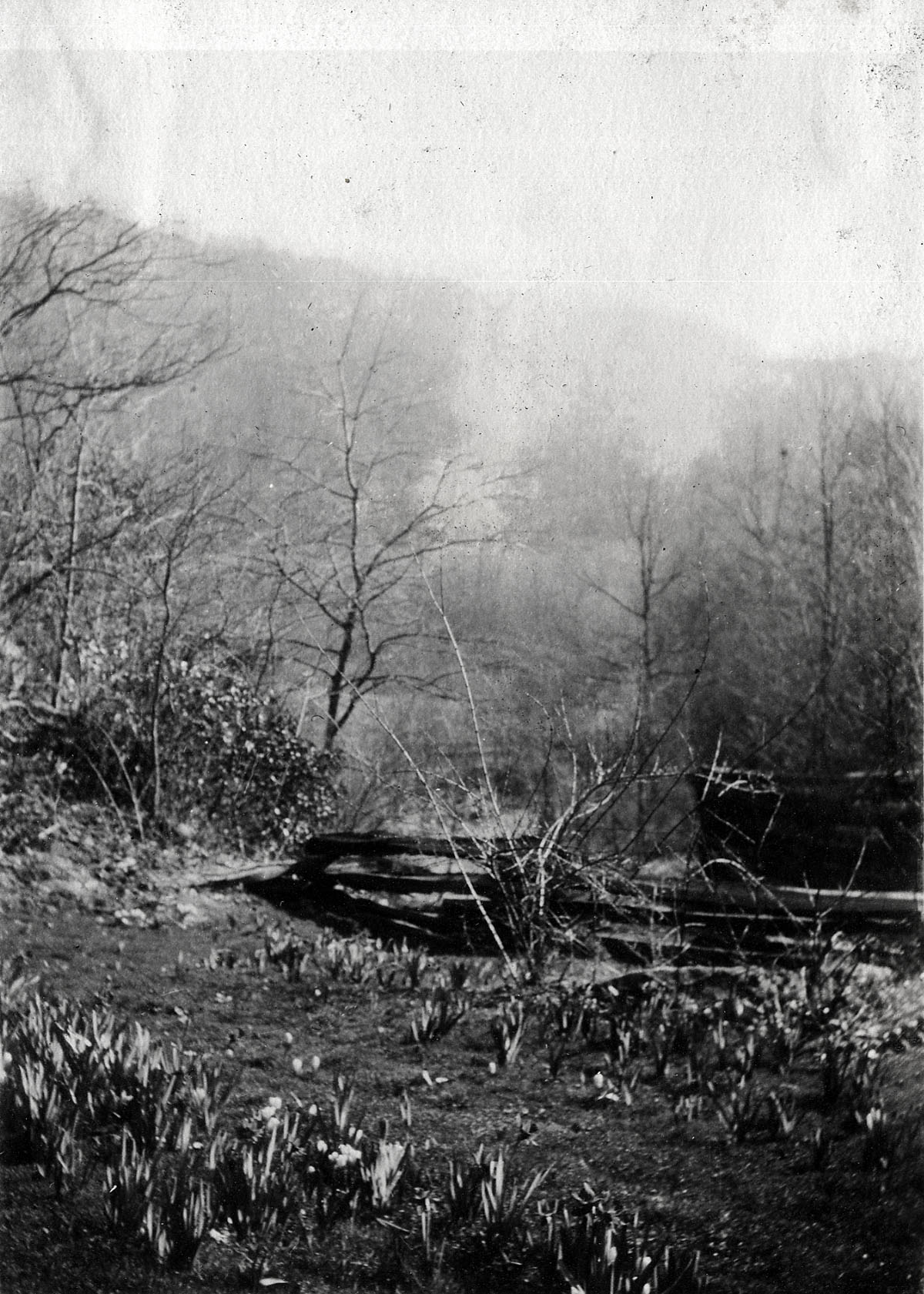- 125 [Spring garden with daffodils and rail fence, Chimney of Old Log ? in distance; [Spring garden with rail fence]; A student … Debbie Hogg