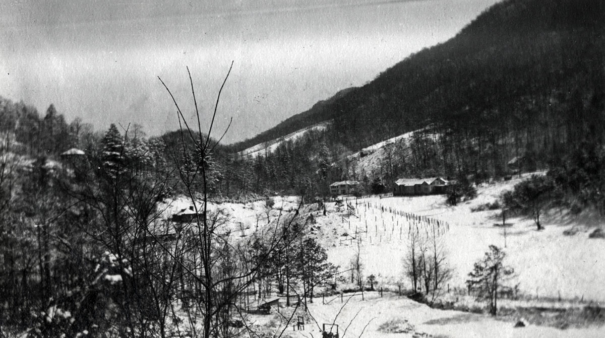 - 143 [Field with horses]; Tool House; [View of mountains from cliff (Jack’s Gap?)}