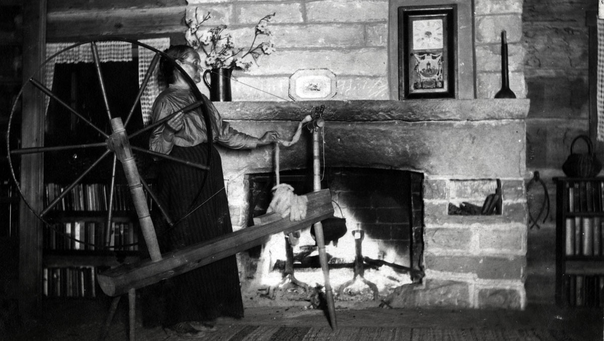 - 151 Aunt Sal Creech (at little spinning wheel); Aunt Sal Creech (spinning)
