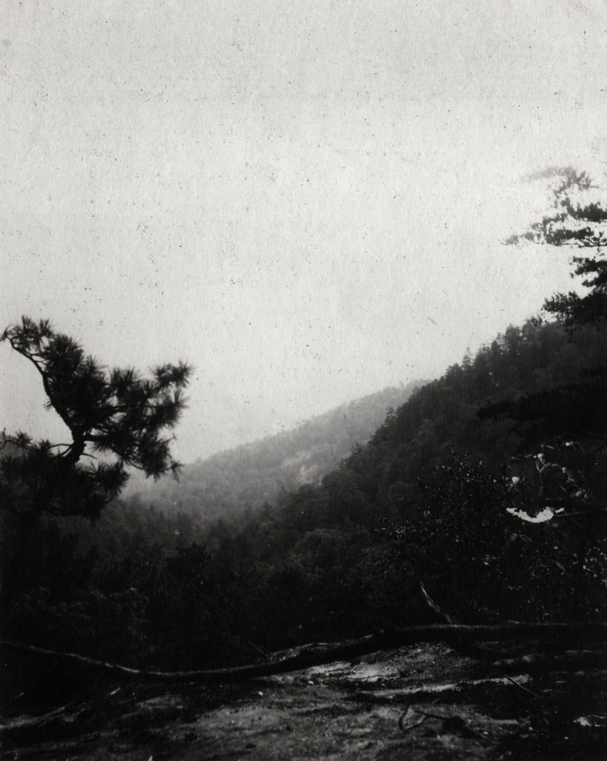 - 144 [View of Jack’s Gap from valley floor]; Jack’s Gap; Jack’s Gap [pine trees]