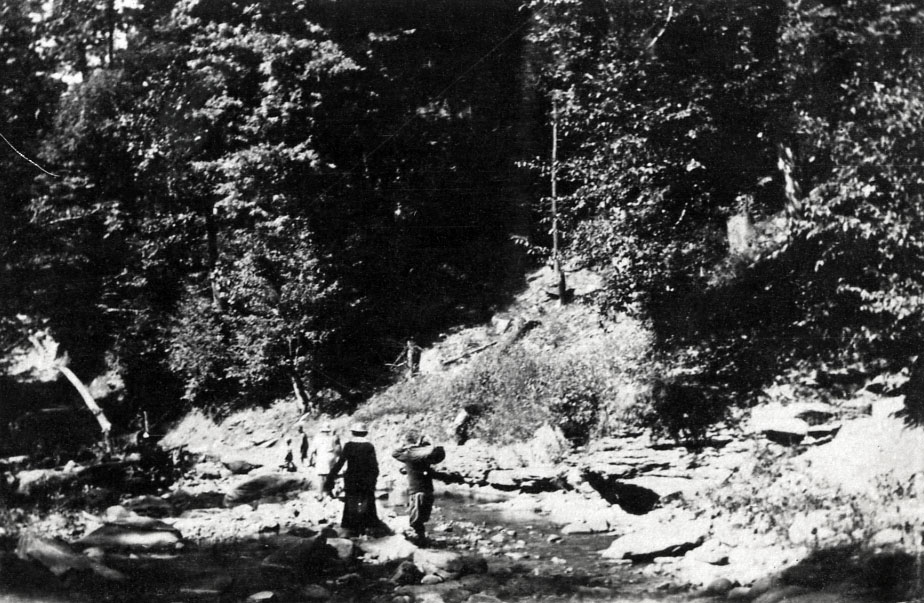 - 147 [Pine Mountain valley ?]; [Distant view of Laurel House I]; [Two women walking along Greasy Creek (?)