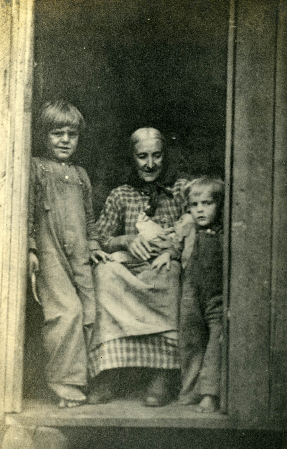 - Friends & Family: VI 37 Aunt Bet Scott in doorway with two young boys. [Vl_37_1185b]