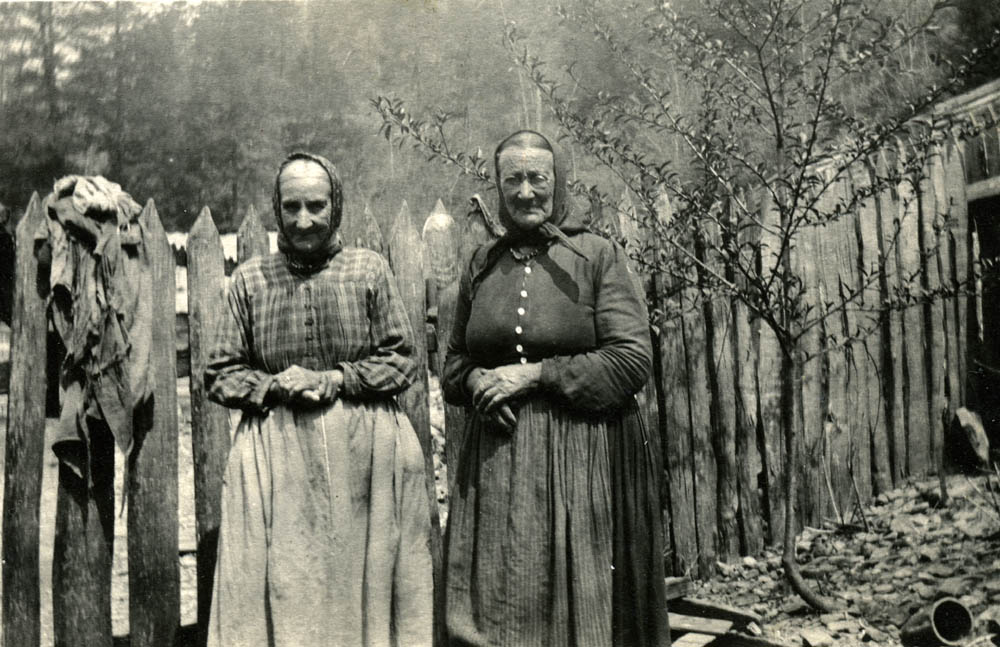 - Friends & Family: VI 37 Aunt Bet Scott to left with [?] to right in front of paling fence. [Vl_37_1185d]