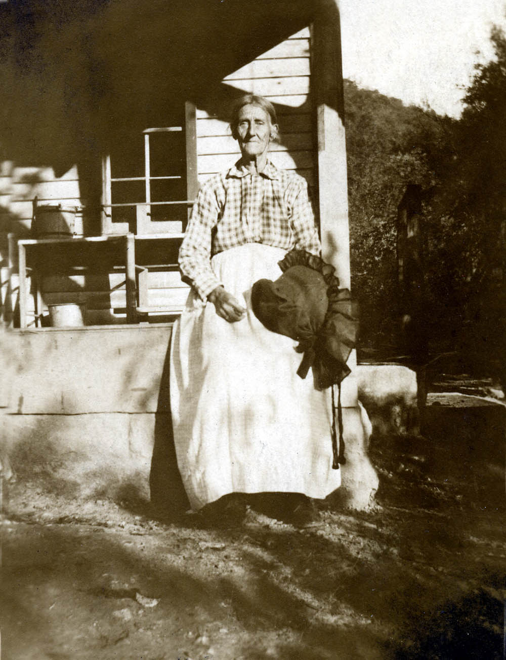 - Friends & Family: VI 37 Aunt Bet Scott seated on porch with basket to her right. [Vl_37_1186a]