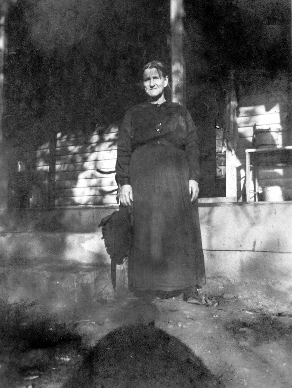- Friends & Family: VI 37 Aunt Bet Scott [?] standing in yard in front of porch. [Vl_37_1186c]