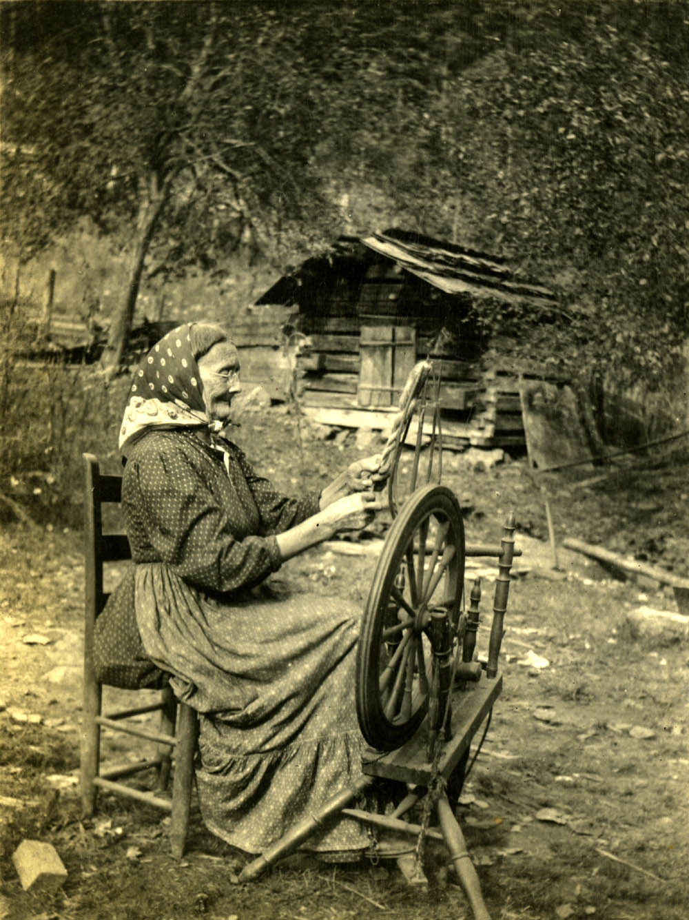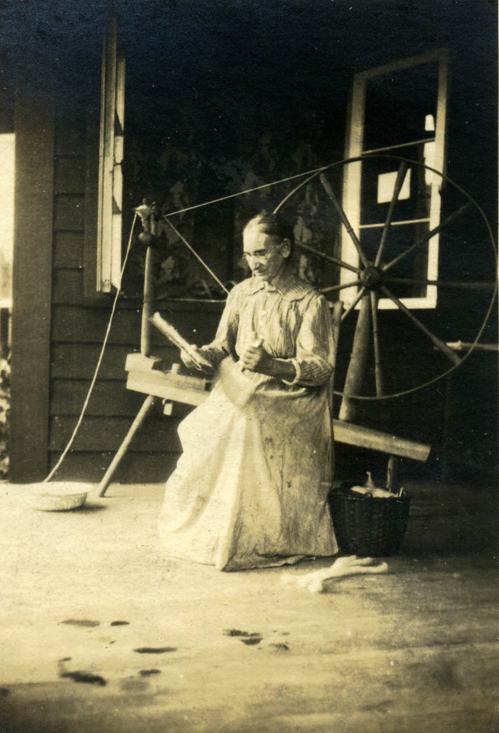 - Friends & Family: VI 37 Aunt Sal at the small spinning wheel, view 4. [Vl_37_1202c]
