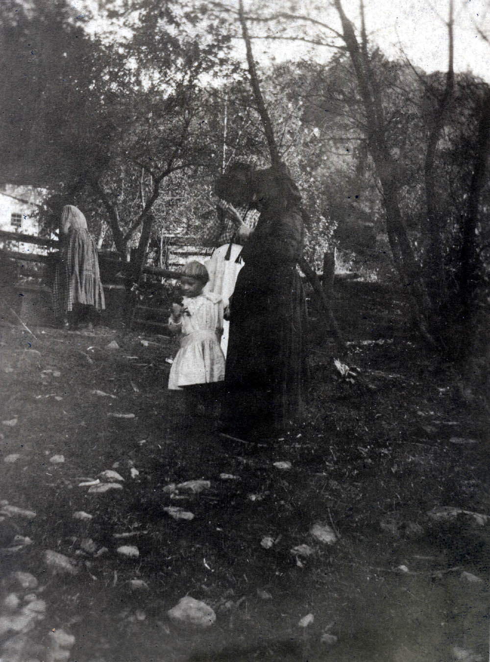 - Friends & Family: VI 37 Aunt Bet Scott (Aunt Sal’s sister) with blond child in front of fireplace and “shucky beans” hanging above the two. (Aunt Sal and young Brit Wilder with dried vegetables behind them.) [Vl_37_1185.jpg]