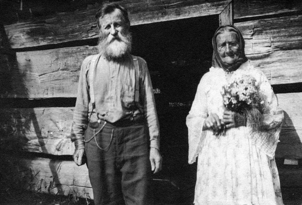 - Friends & Family: VI 37 Uncle William and Aunt Sal re-enacting their wedding, standing in front of their original cabin, now moved to PMSS. [Vl_37_1203f]