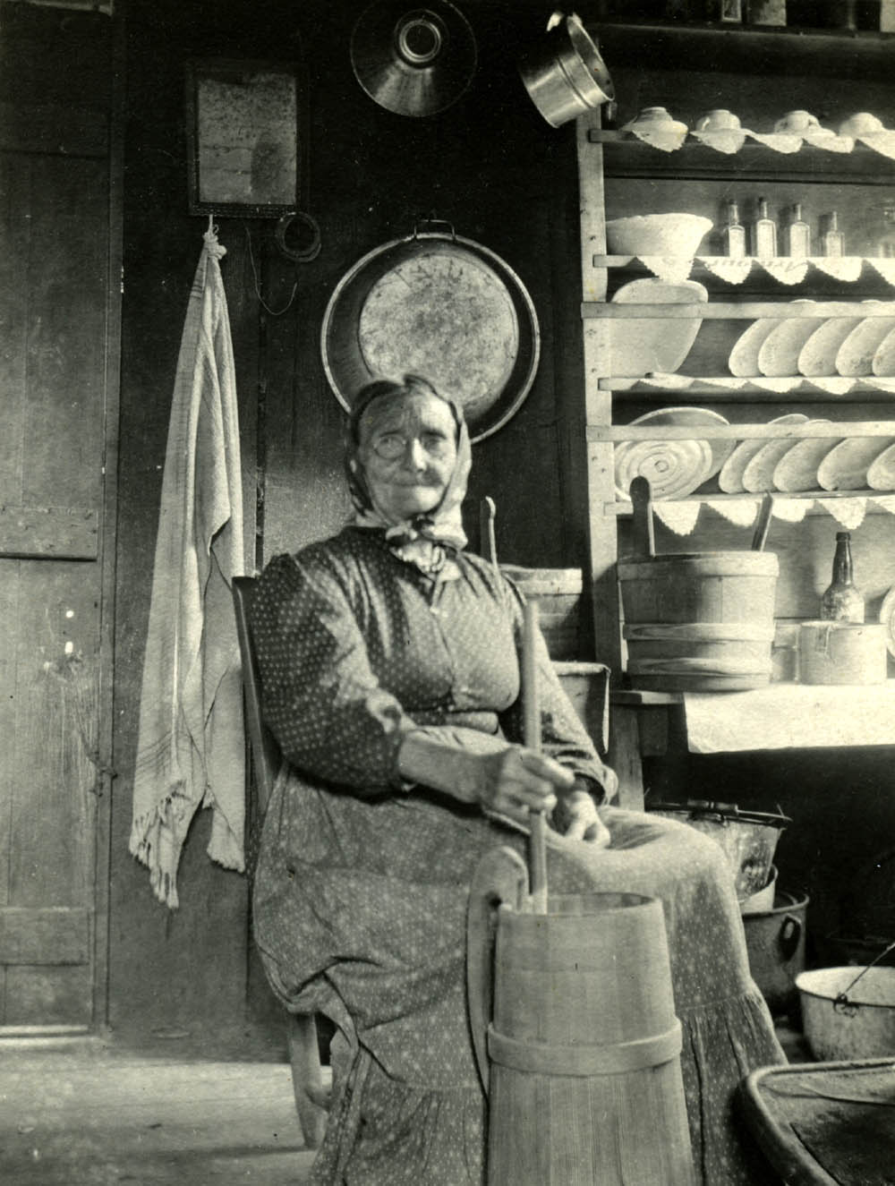 - Friends & Family: VI 37 Aunt Sal seated at her churn in home interior. [Vl_37_1202a]
