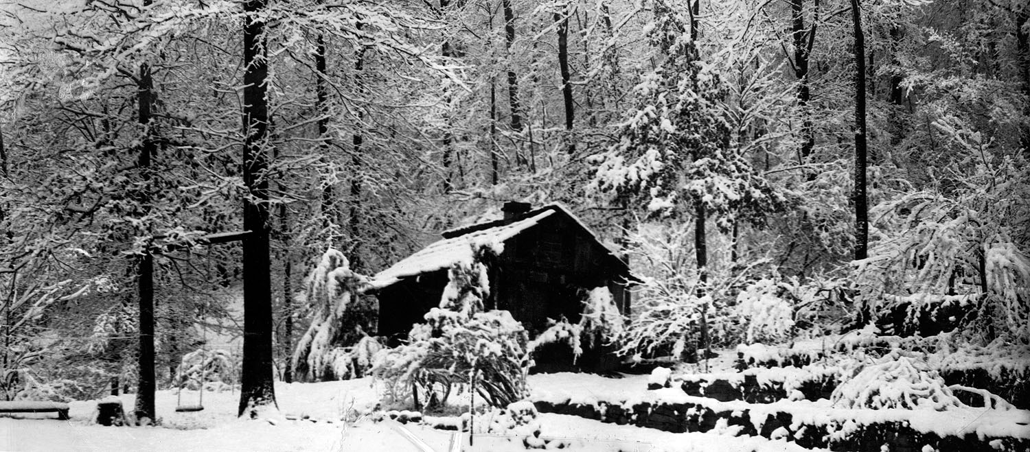 - Lutrella Baker Album. Line Fork Settlement, 1937-41. View of Cabin in heavy snow. line_fork_004b
