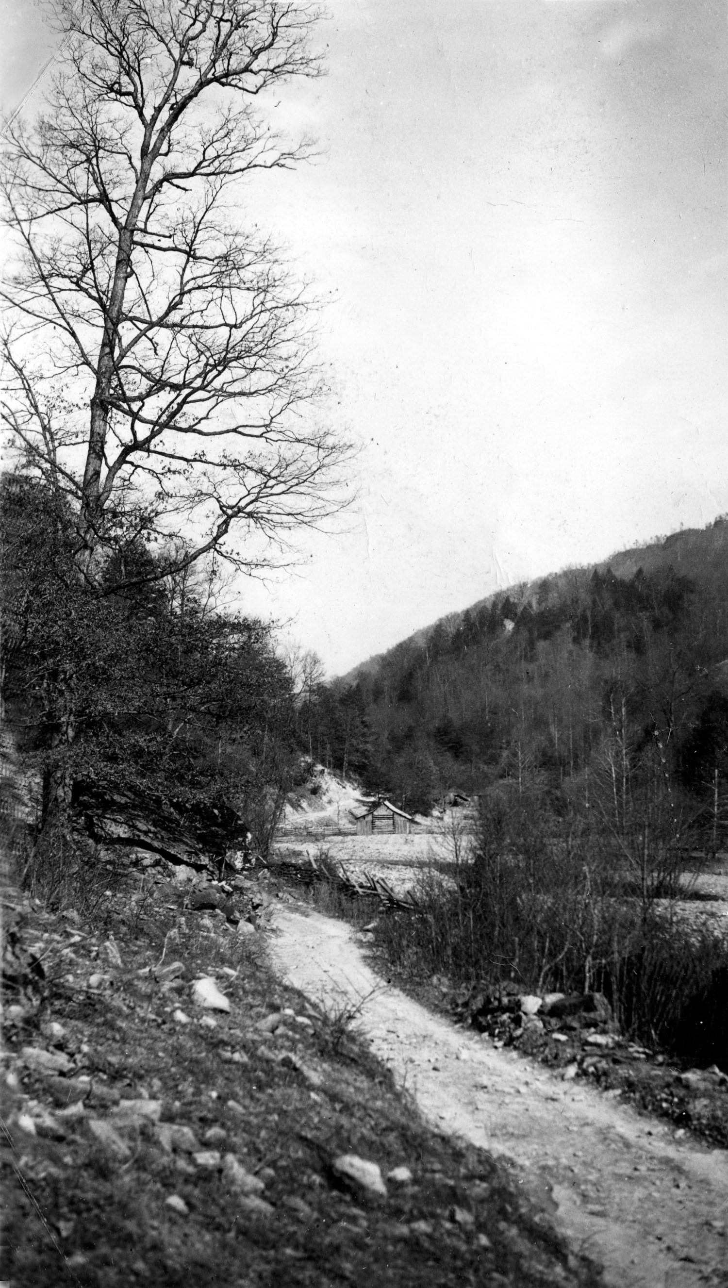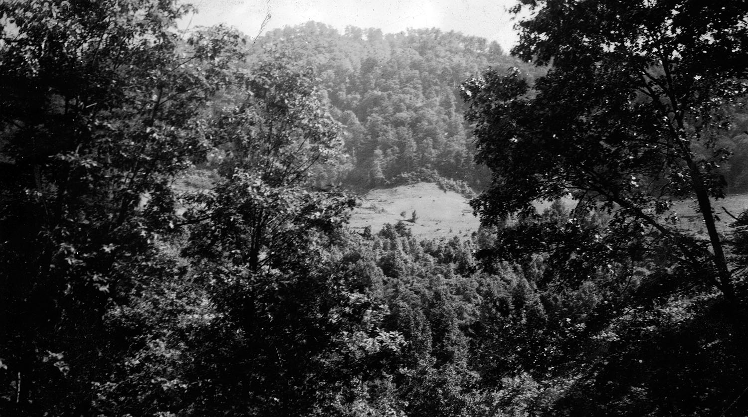- Lutrella Baker Album. Line Fork Settlement, 1937-41. View of valley mountains and fields. line_fork_013b