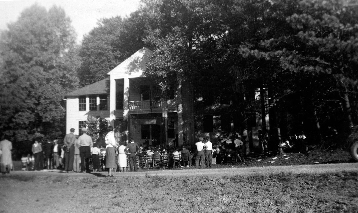 - Lutrella Baker Album: Line Fork Settlement, 1937-41. Burkham School House at Pine Mountain Settlement School with community gathering. [line_fork_014]