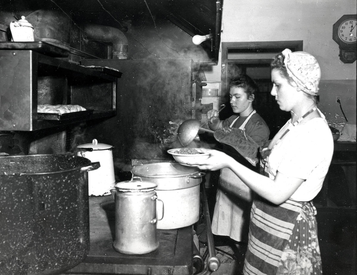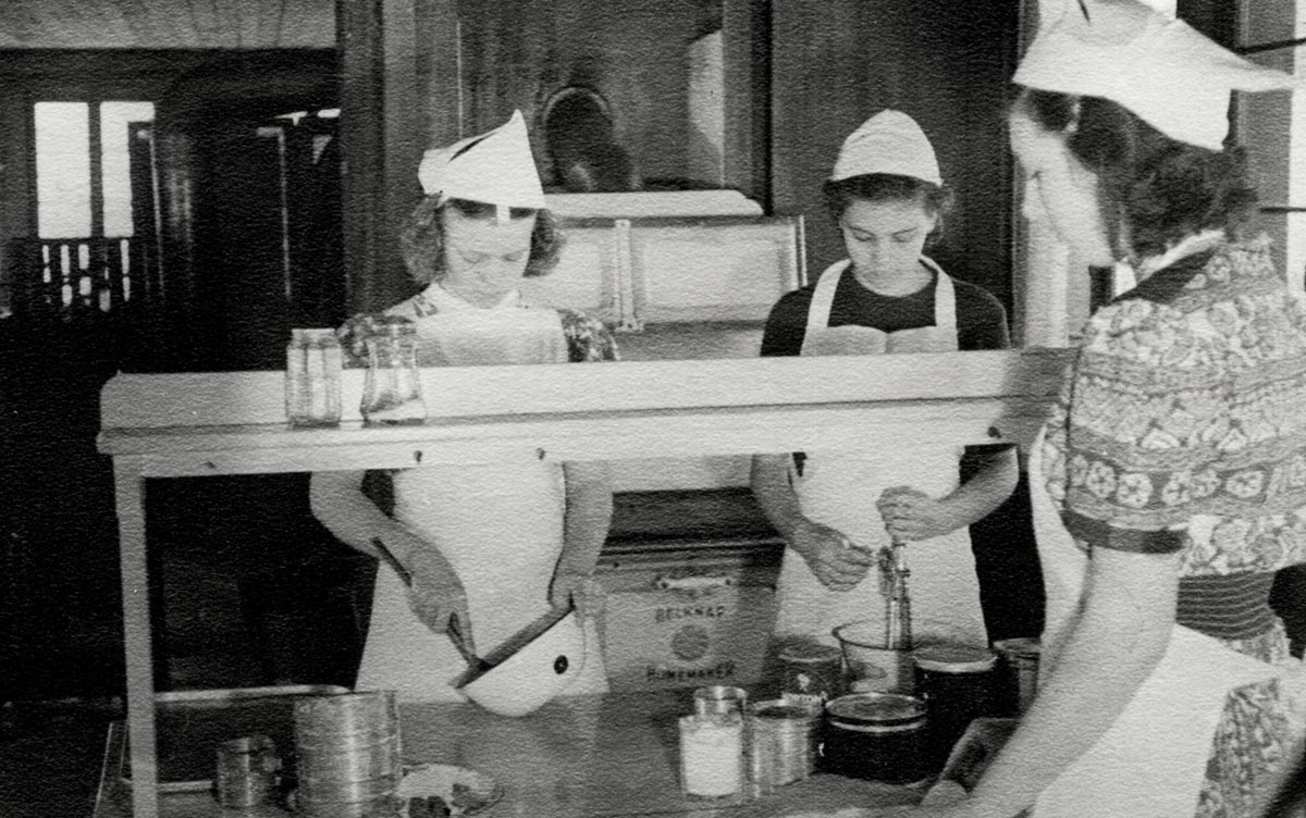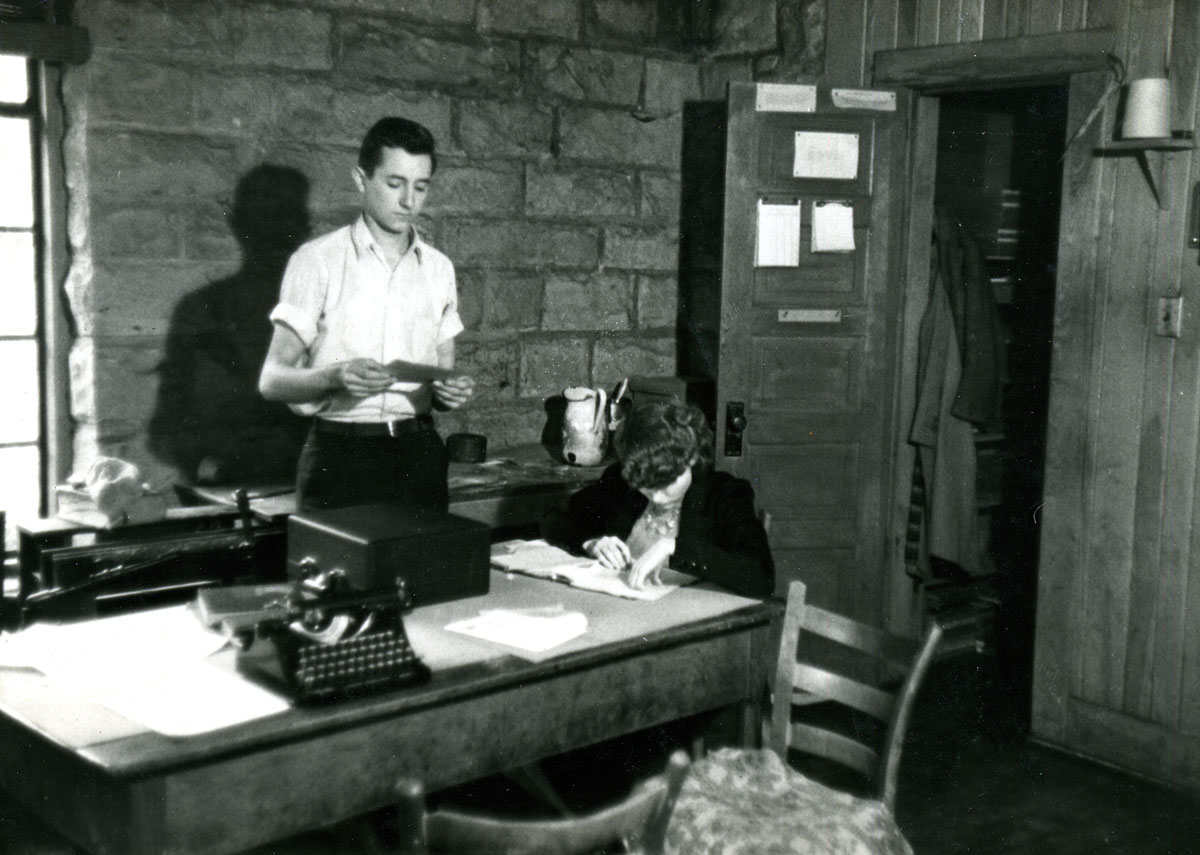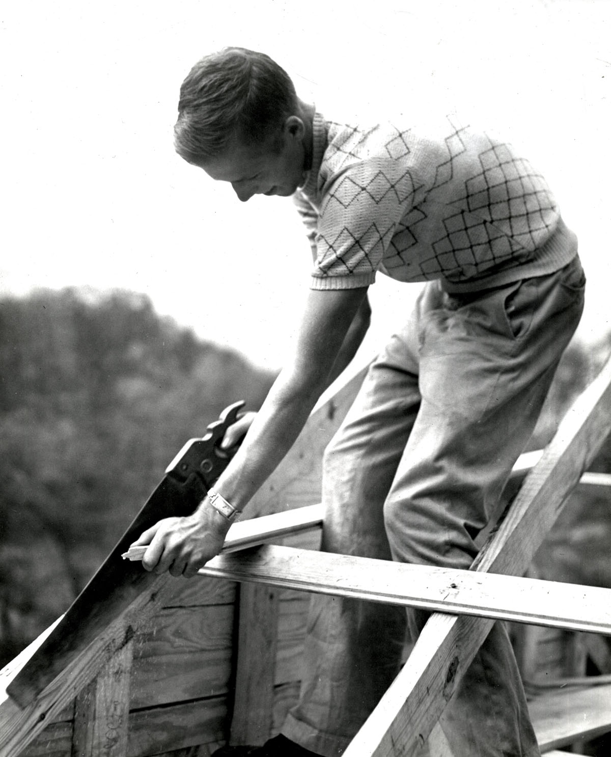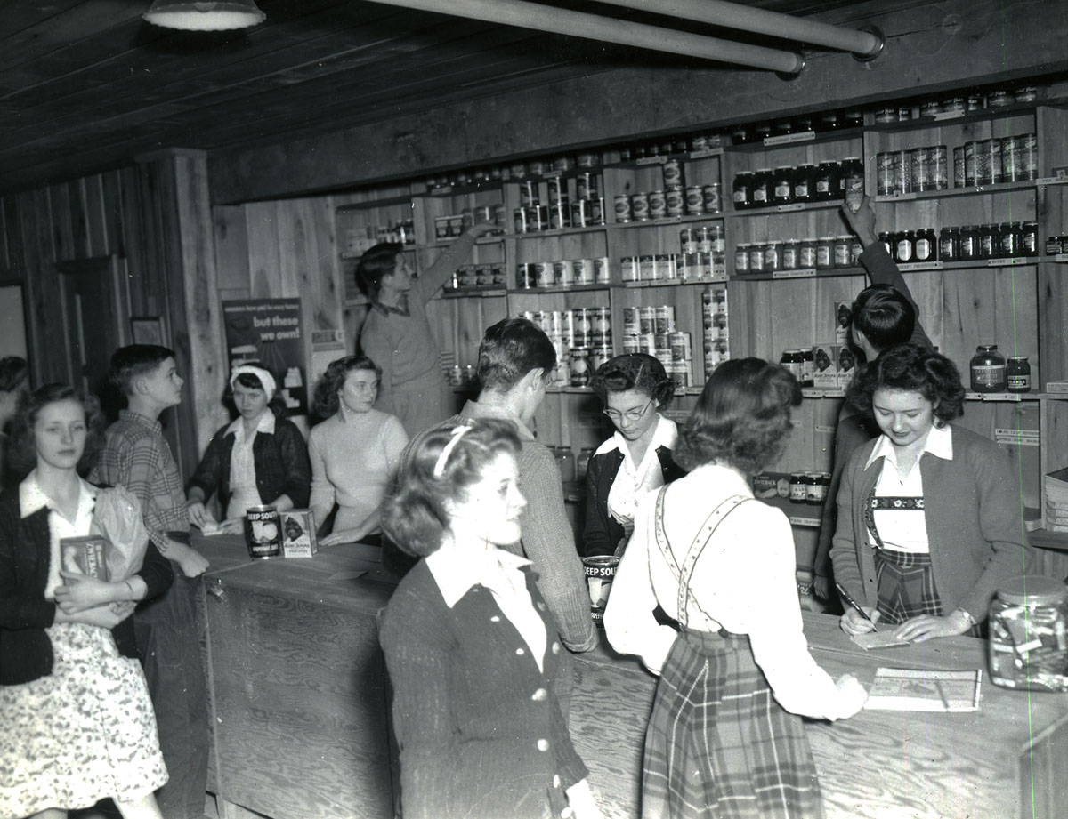 TAGS:  campus life; student work; labor; education; vocational education; ; lime kilns; limestone; Smoke House; Arthur Doane;  curing meat; farming; ploughing; horses; Ayrshire cows; milking; pigs; shoats; carpentry; art; painting; typing classes; print shop; Ruby Ayers;