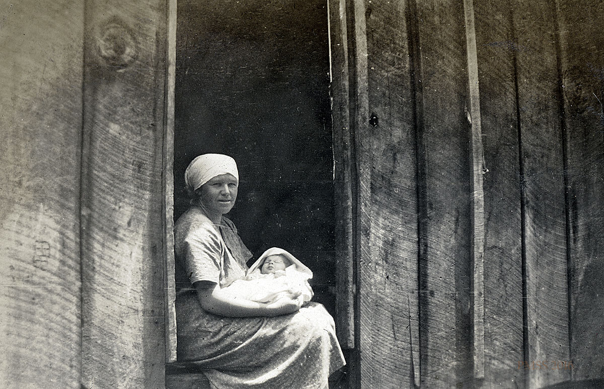 - Second Generation Album. Woman in doorway with baby. Anon. [unknow_016_mod.jpg]