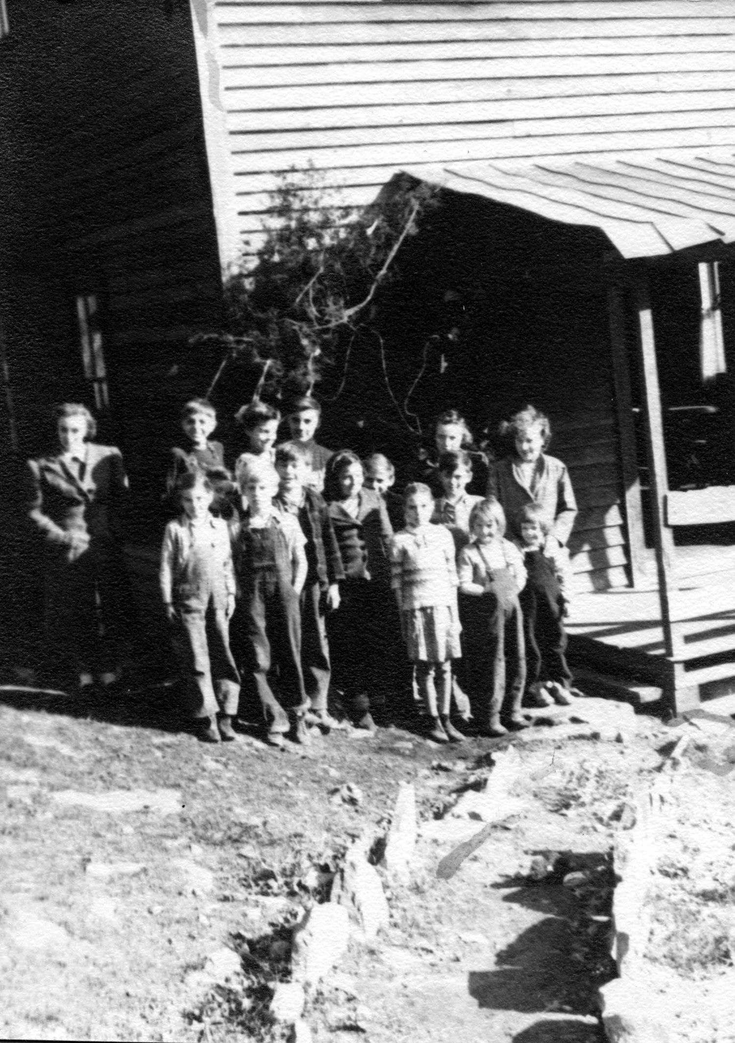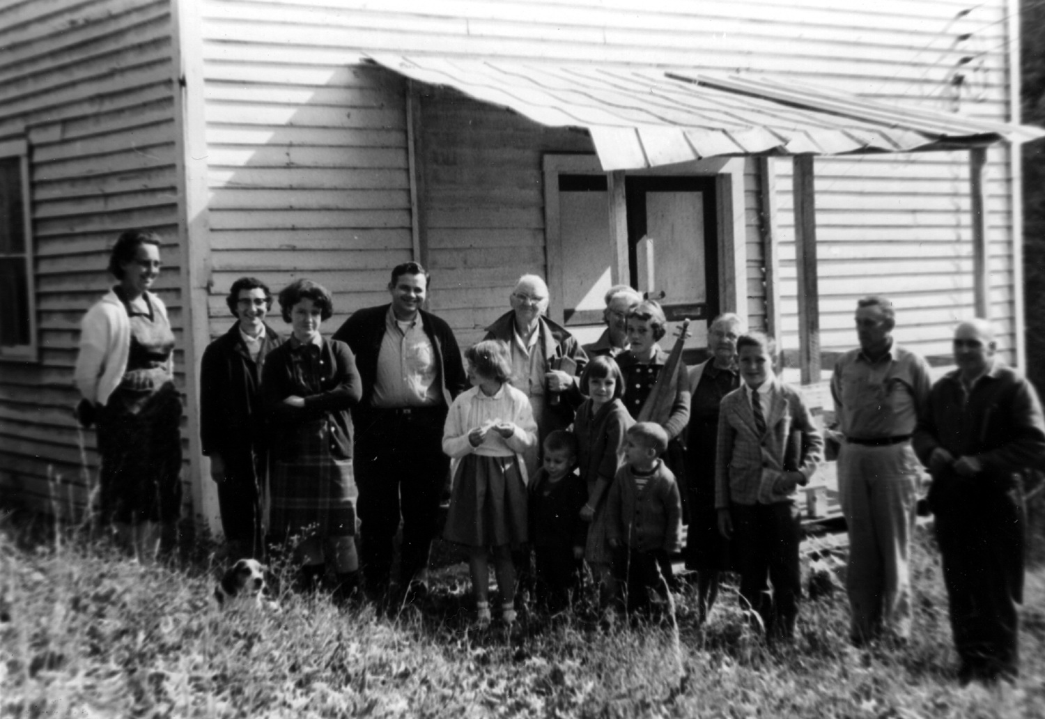 - VI-51 – 1617. Creech family and friends. Far left: Milly Mahoney; Marian Leach; Bill Leach; Delia Creech. [VI_51_friends_neighbors_1617_mod.jpg]