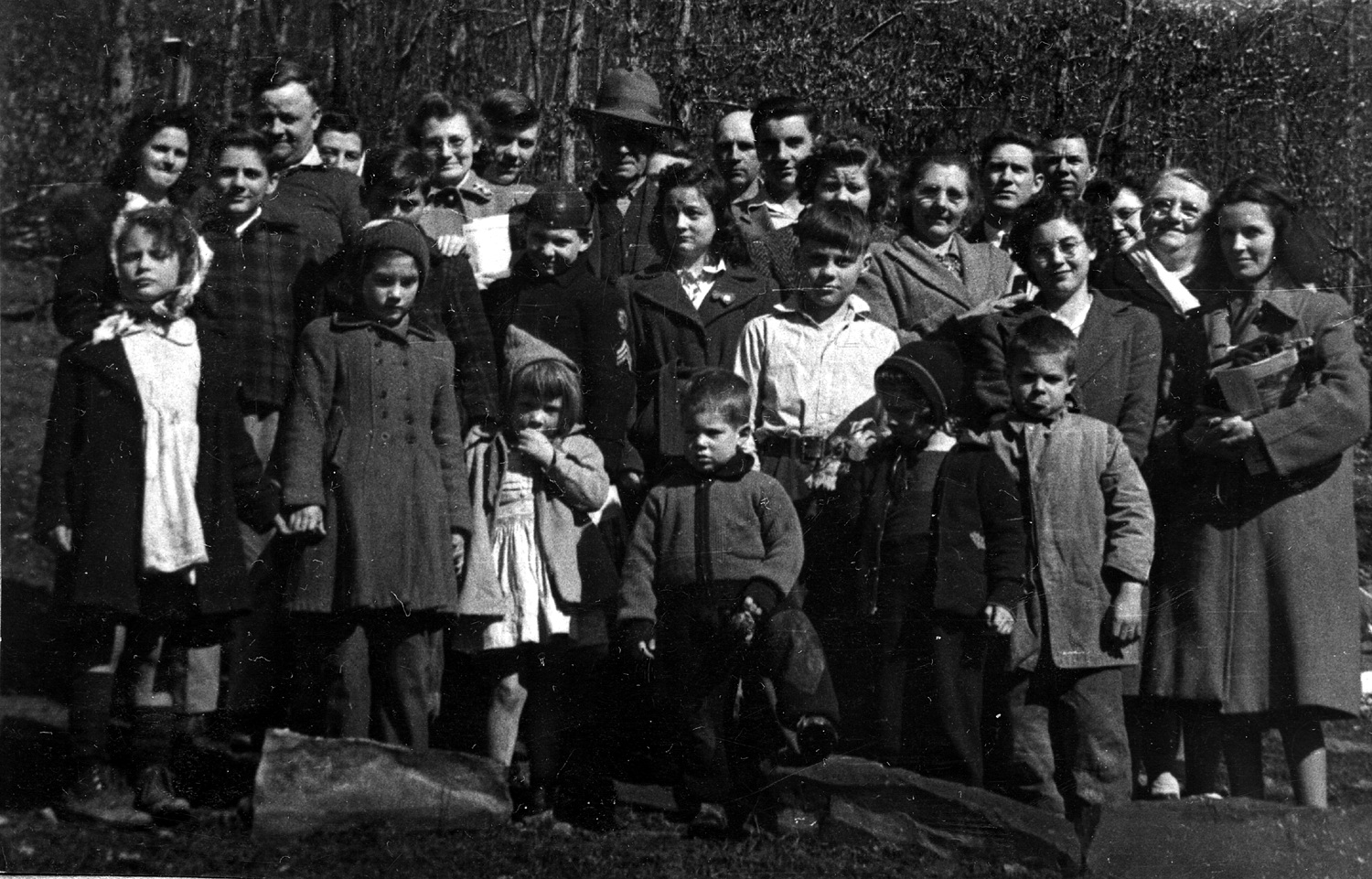 - Creech family and friends. Far left: Milly Mahoney; Marian Leach; Bill Leach; Delia Creech. VI-51 – 1612.
