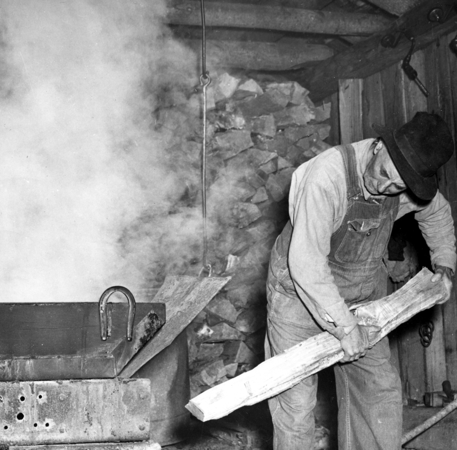 - VI-51 – 1723. (?) and Charles Creech polishing Laurel House floors.