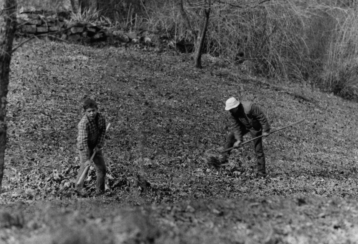 TAGS:  beekeeping ; bees ; honey ; hives ; apiaries ; ditching ; stone removal ; gardening ; gardens ; woodworking ; sowing ; seeds ; planting ; butchering ; steers ; meat ; food preparation ; maintenance ; grounds ; farm ; farming ;