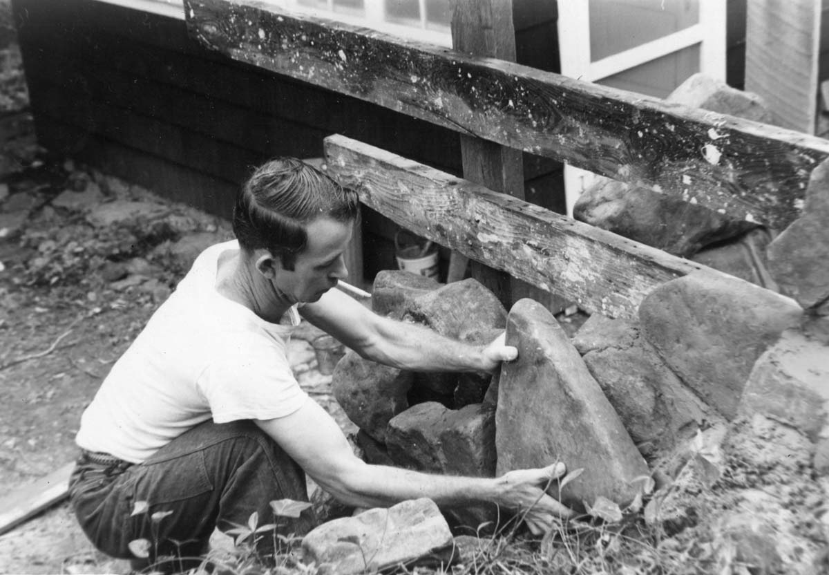 - Building stone wall. VII 63 Life Work Maintenance, Farm, Grounds.