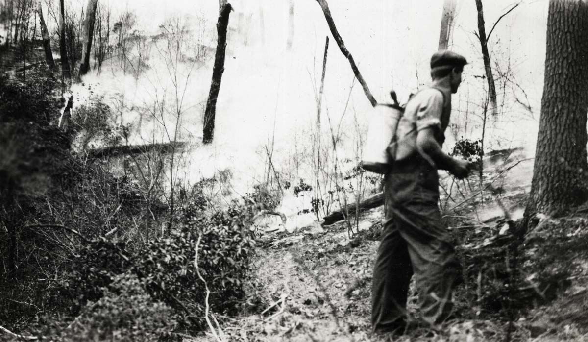 - Forest fire in the ridge-top of Pine Mountain, c. 1945
