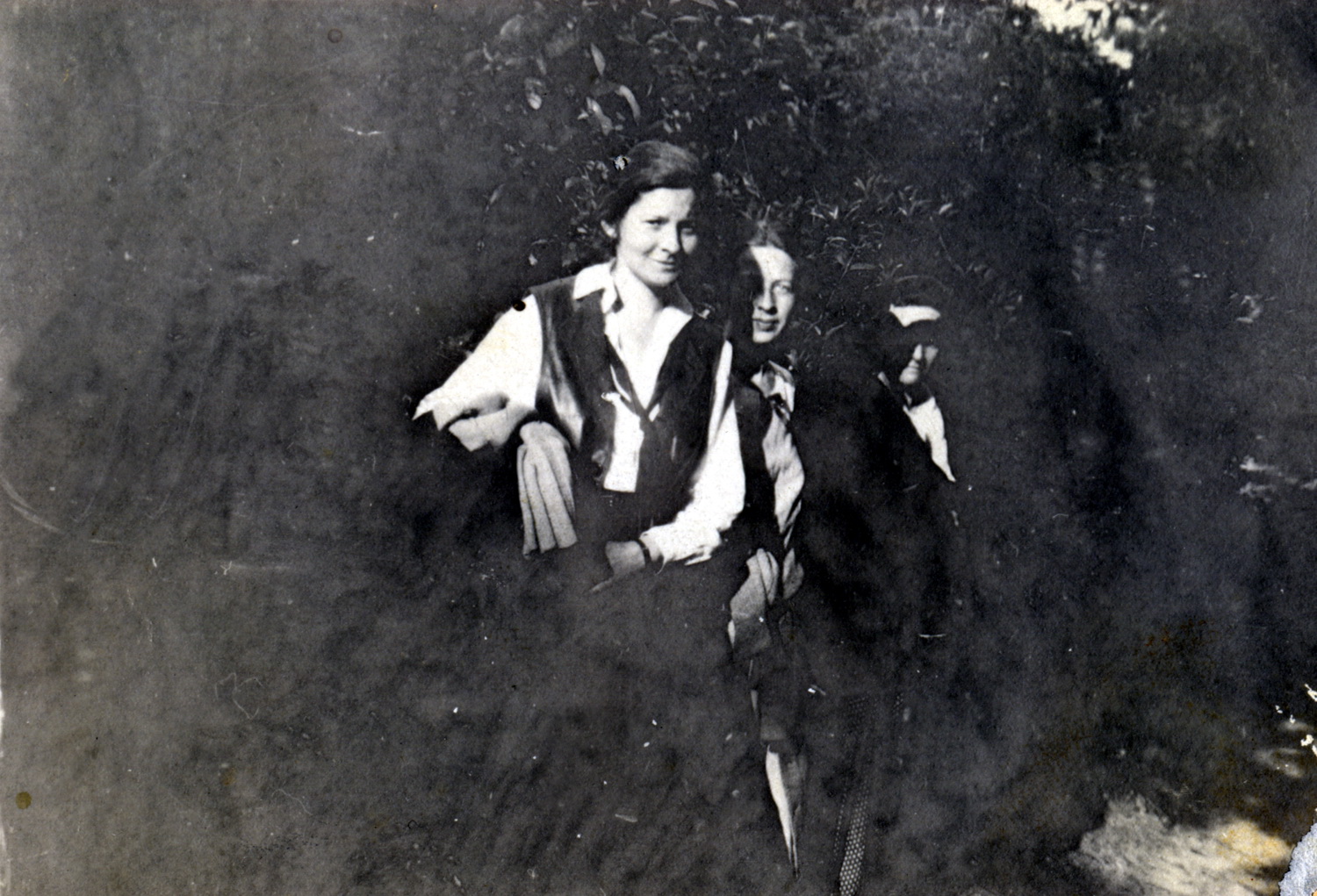 - Group picture, waving branches, 1930s. Standing in front of Far House terrace door. X_100_workers_2572_mod.jpg